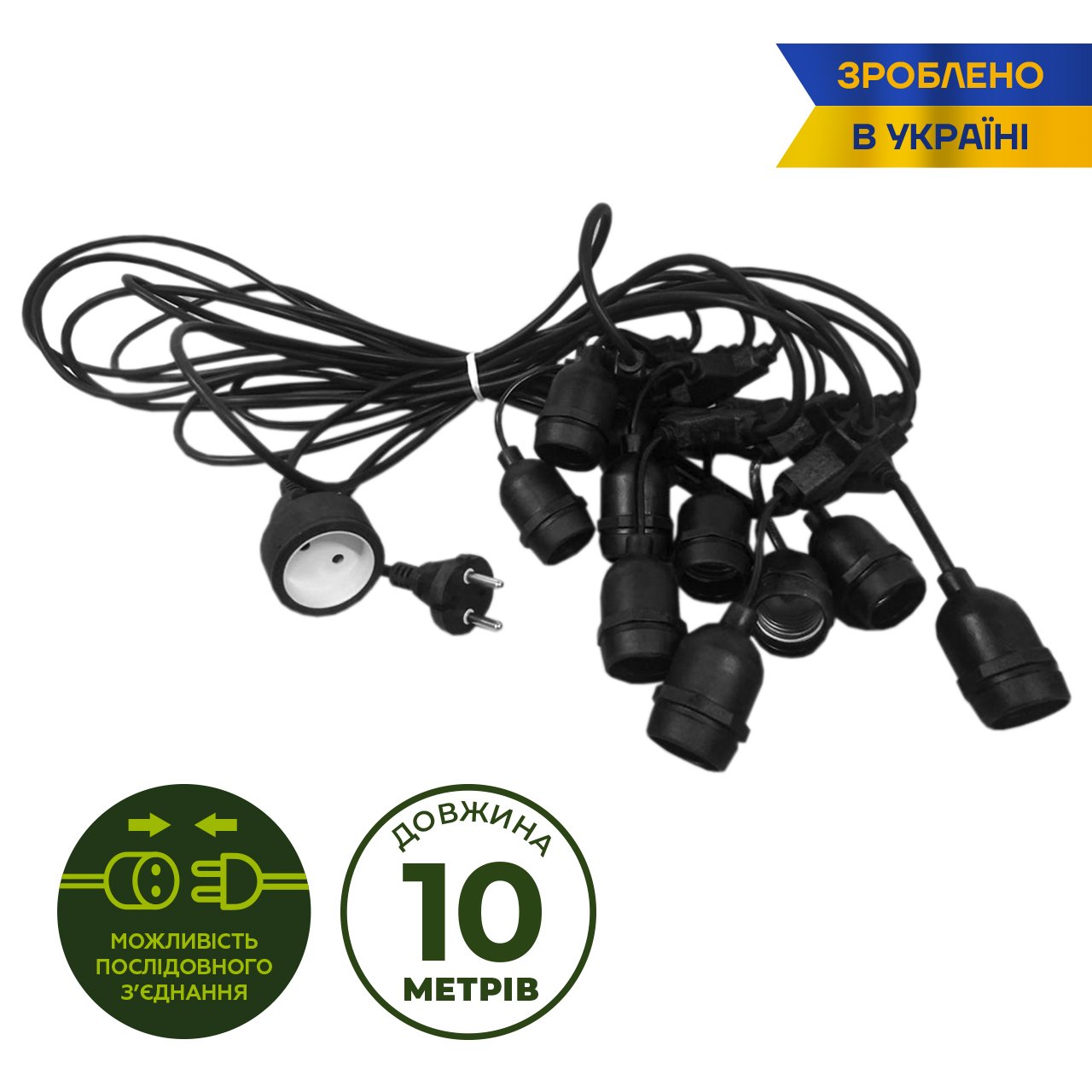 Уличная гирлянда Eurolamp для ламп Е27х10шт черная 10м IP44 без ламп GAR10_M10