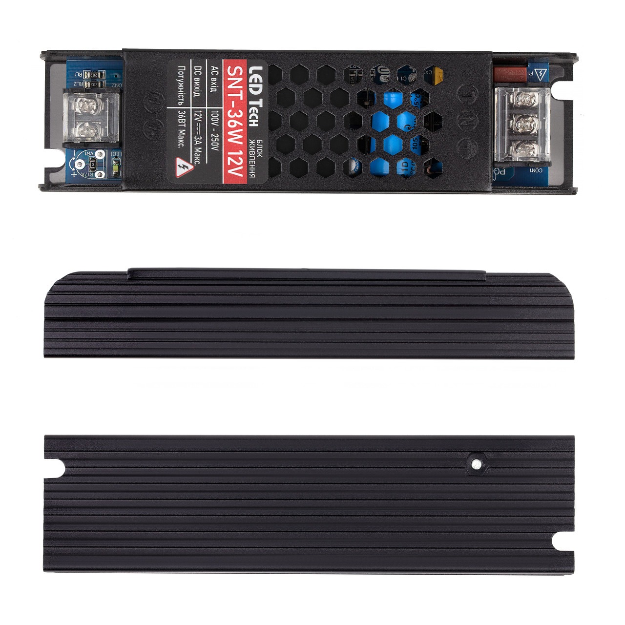 Импульсный блок питания SNT преобразует переменное напряжение 220 в постоянное напряжение 12 В с максимальной нагрузкой 3 а. Блок принадлежит к премиальному сегменту серии SNT имеет гарантию 24 месяца. Серия "SNT" имеет защиту от короткого замыкания, защиту от перегрузки и перегрева. При производстве используются только качественные комплектующие: синий двухслойный промышленный текстолит, высококачественный трансформатор из чистой меди, конденсаторы >50000ч, фильтр защиты от помех, алюминиевый корпус для лучшего теплоотвода.