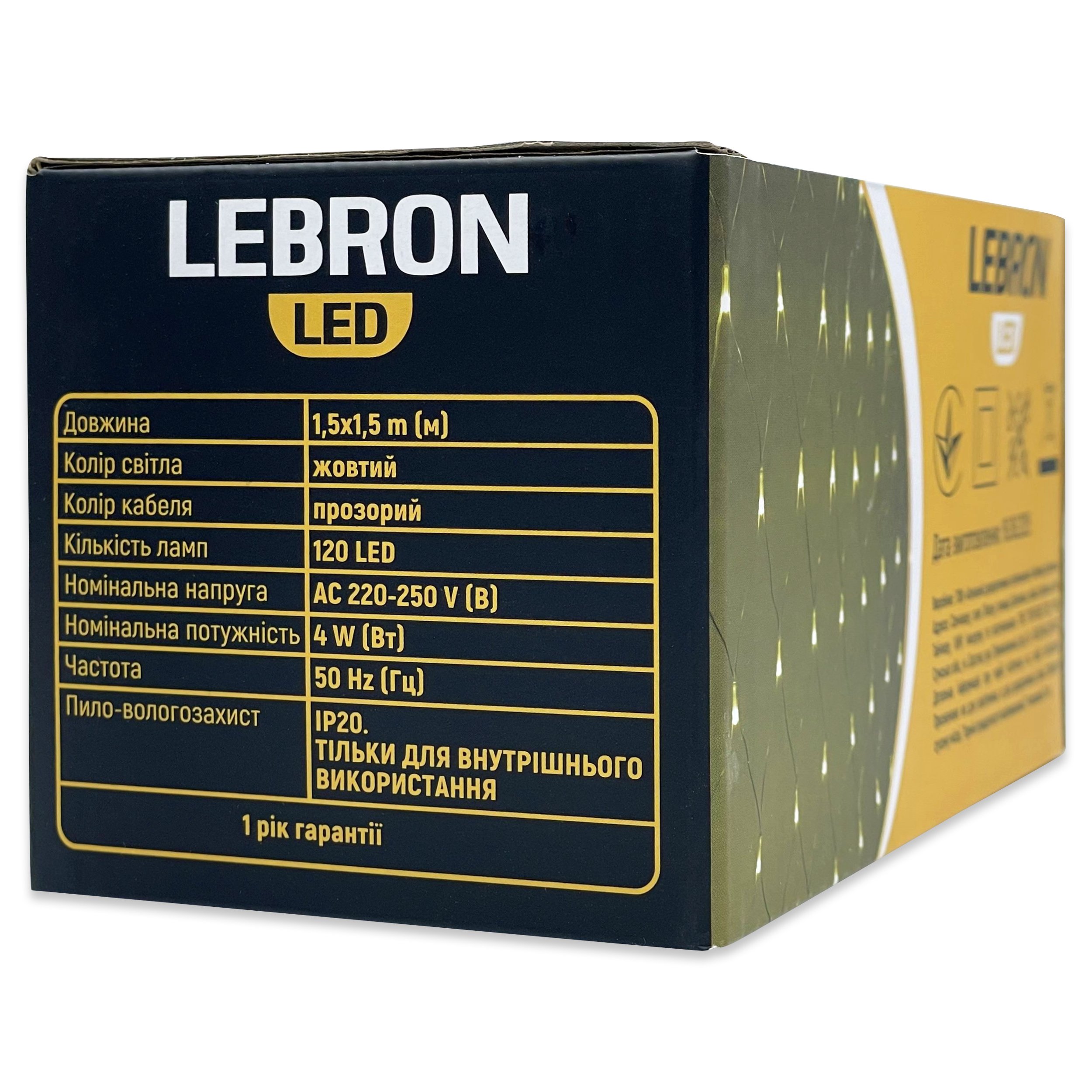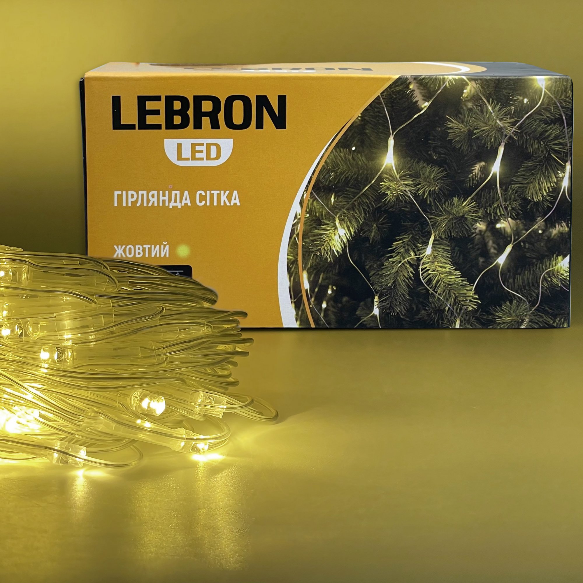 LED гирлянда Lebron сетка 1.5x1.5м 120LED 220В IP20 желтая 15-18-53