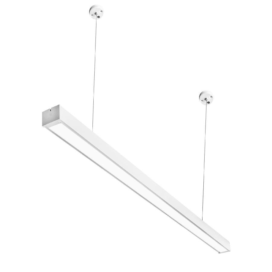 - Корпус линейной формы позволяет собирать светильники в сплошные световые трассы или отдельные композиции. Подвес на тросах позволяет точно выставить высоту размещения, адаптируя освещение под конкретное пространство. Конструкция подразумевает удобный доступ к драйверу без демонтажа всей линии, что упрощает монтаж и сервис..