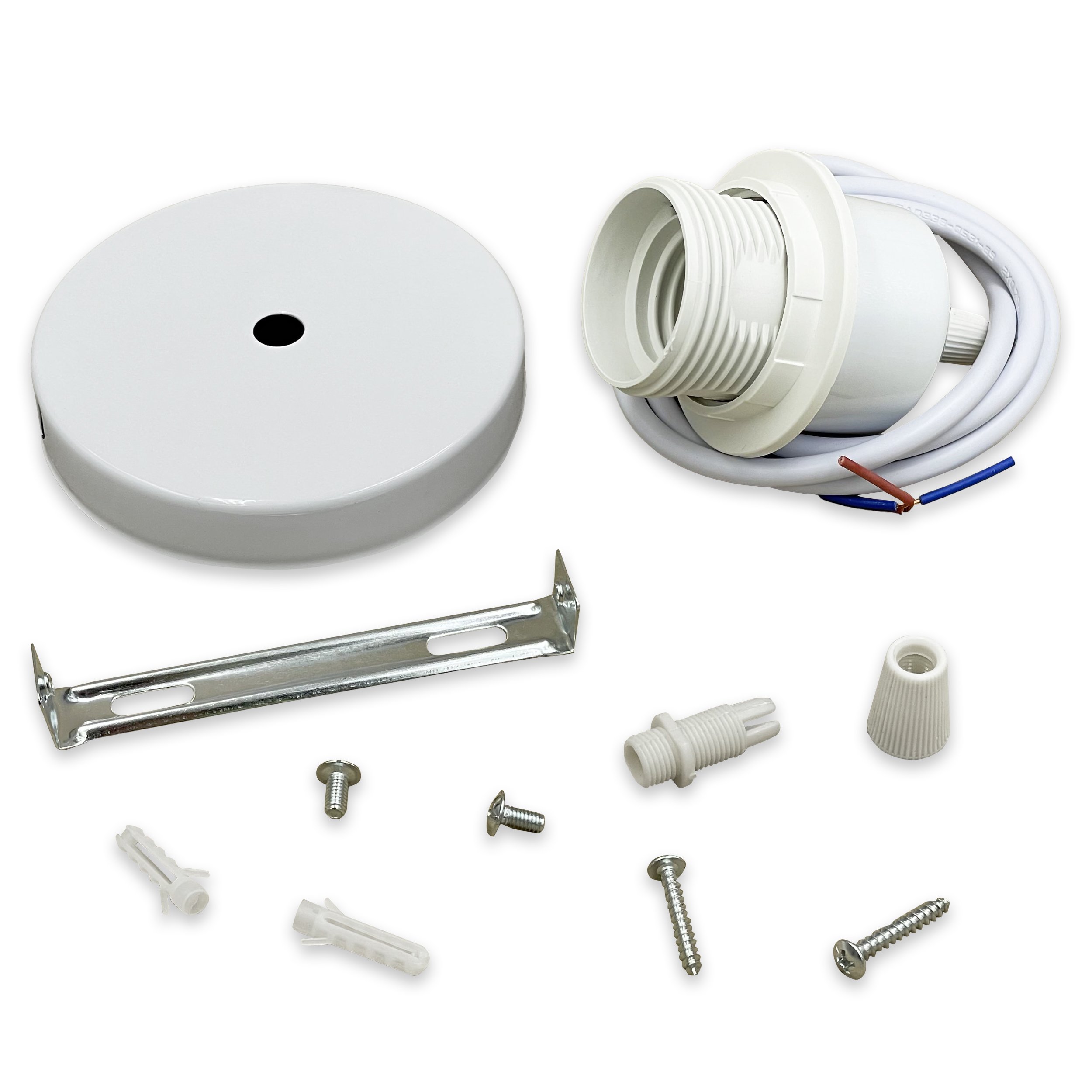 Конструкция сочетает пластиковый патрон, медную контактную группу для стабильной и безопасной работы, а также металлическую основу и чашу, которые обеспечивают прочность и долговечность. Длина провода – 1 м, что позволяет легко регулировать высоту подвеса в соответствии с интерьером.