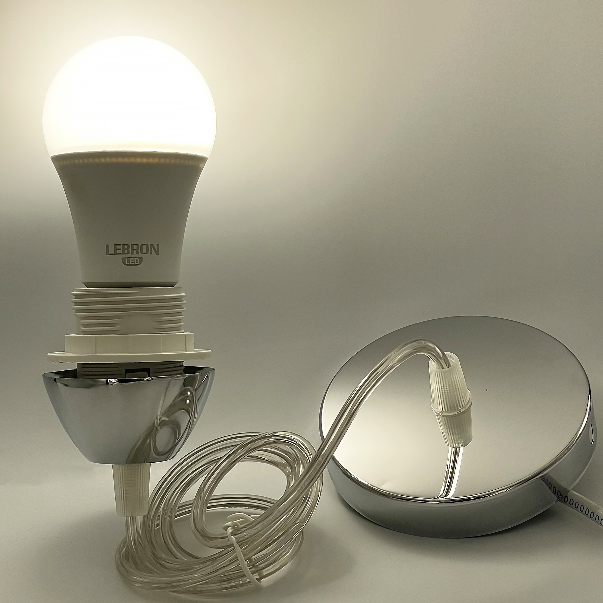 Конструкция сочетает пластиковый патрон, медную контактную группу для стабильной и безопасной работы, а также металлическую основу и чашу, которые обеспечивают прочность и долговечность. Длина провода – 1 м, что позволяет легко регулировать высоту подвеса в соответствии с интерьером. Комплект оснащен надежным креплением.