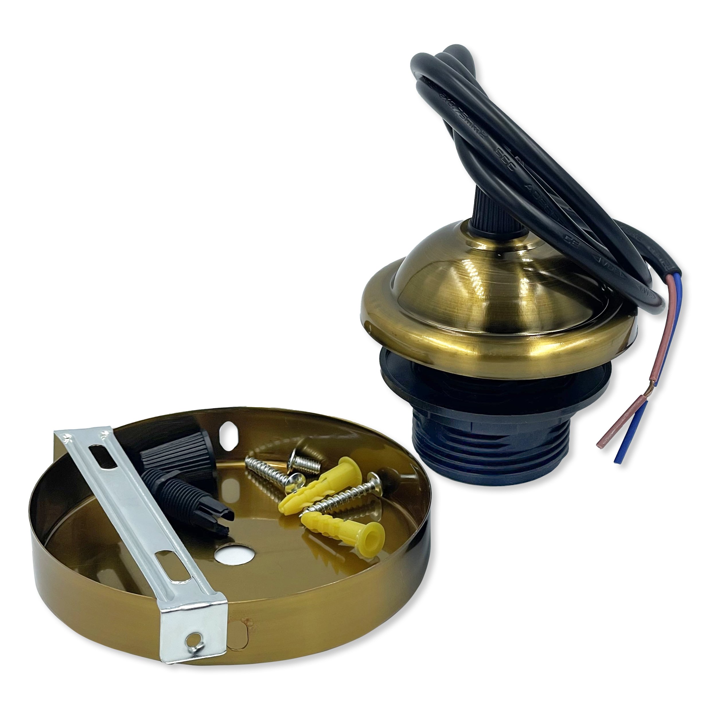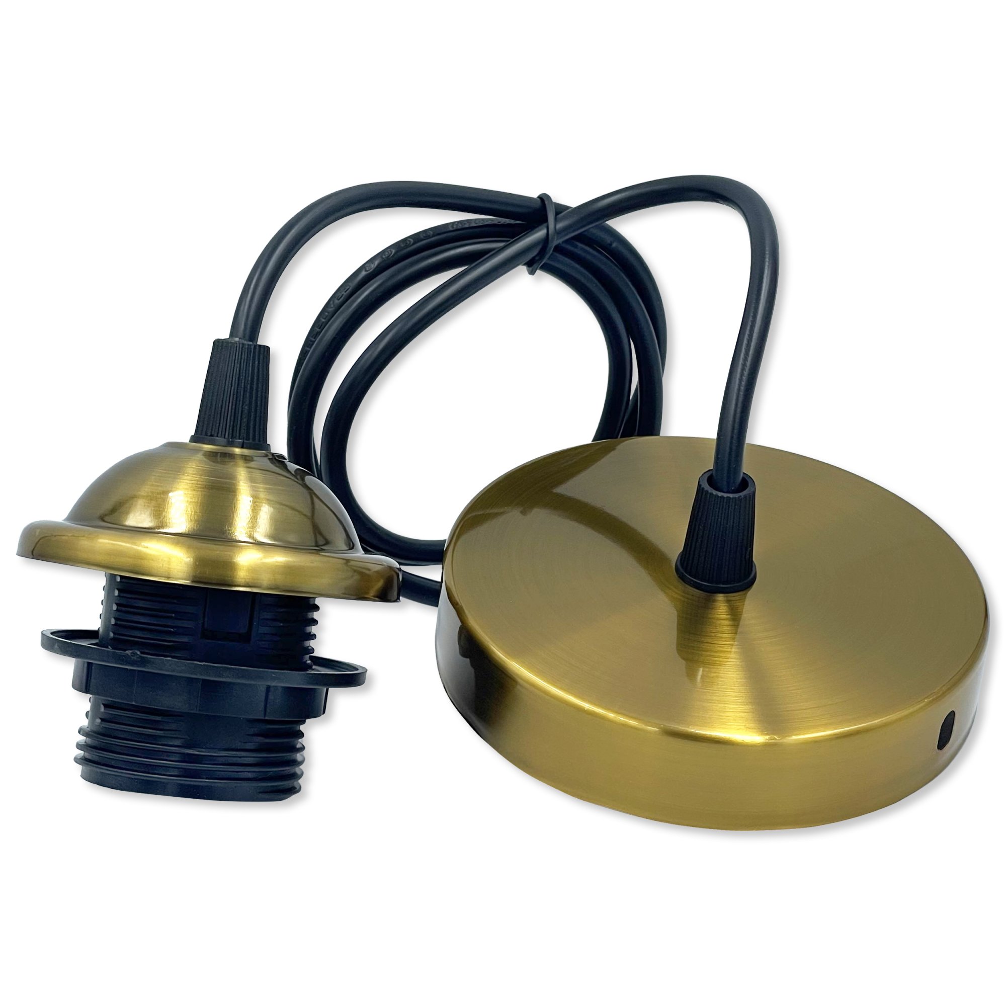 Патрон подвесной люстровый Е27 с креплением, металлическая основа, провод 1 м – надежный и стильный элемент для создания современного освещения. Подходит для использования с лампами с цоколем E27, что делает его универсальным решением для большинства светильников.