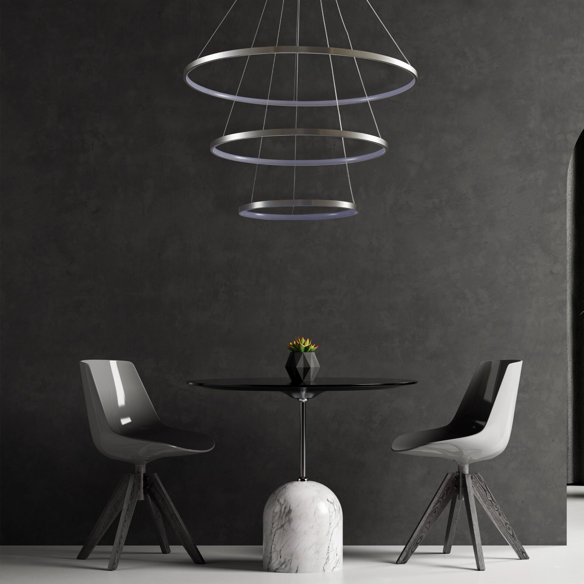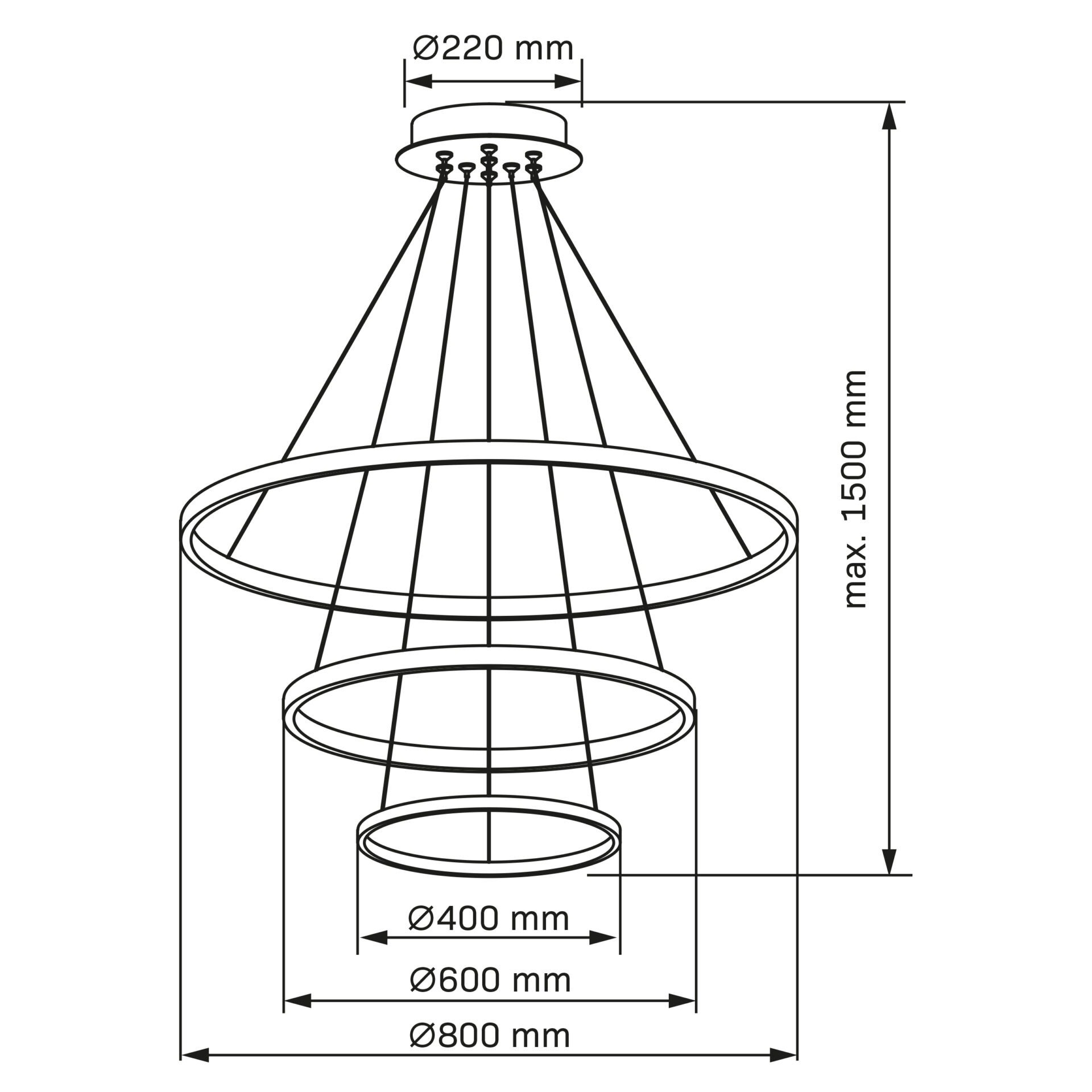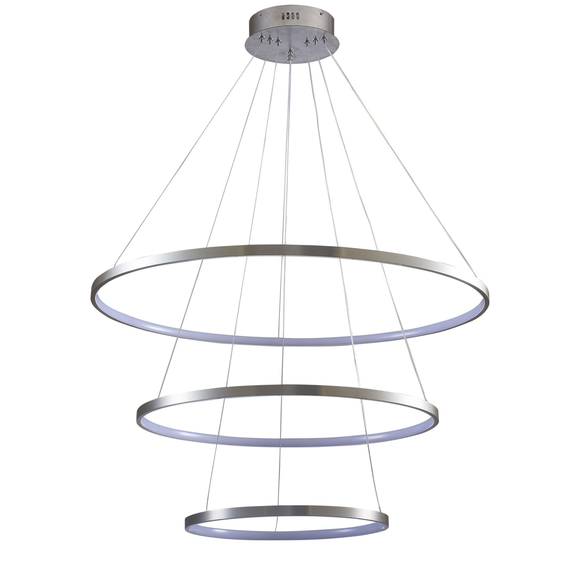 Подвесная люстра Goldlux Lea LED 3x60W 4000K — современный стильный светильник для просторных помещений, сочетающий элегантный дизайн с мощным LED-освещением. Три кольцевые LED-модули обеспечивают световой поток 8000 лм, создавая равномерный нейтральный белый свет (4000K), который подходит для кухни, спальни или гостиной.