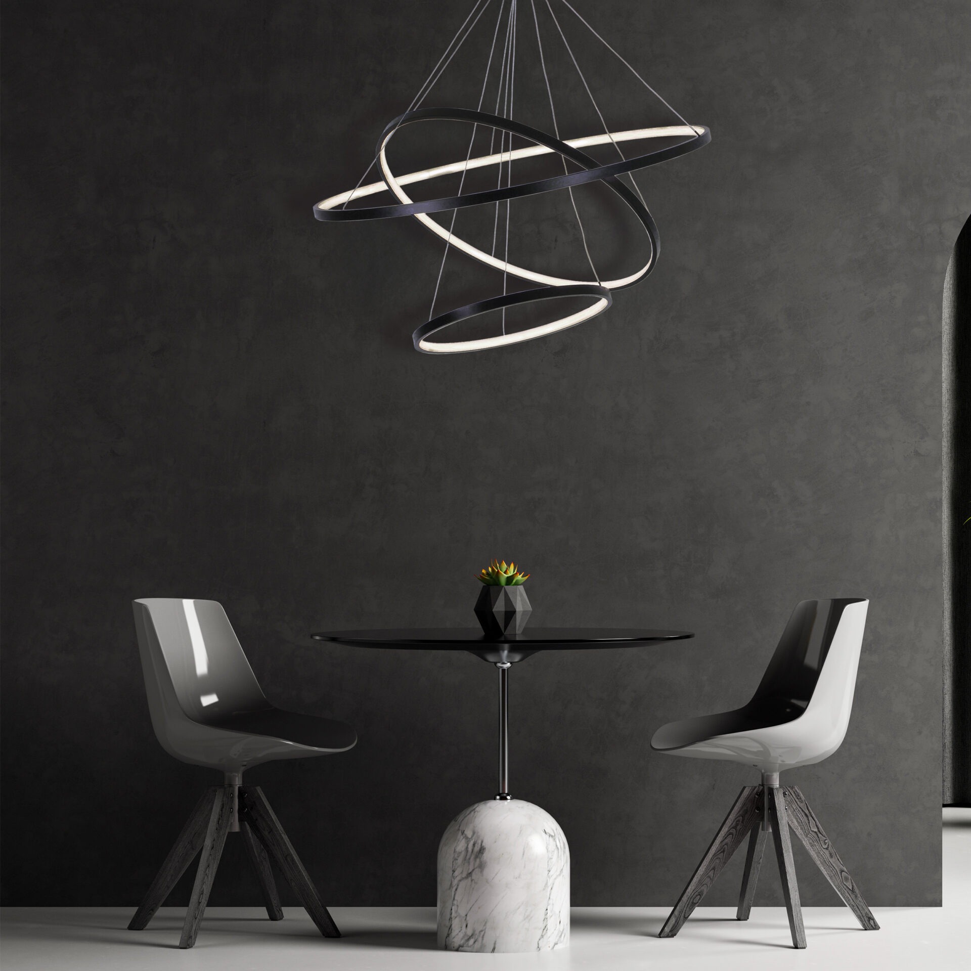 Светильник отличается продуманной конструкцией, простым монтажом и совместимостью с натяжными потолками. Его современный дизайн с плавными кольцевыми формами станет стильным акцентом в любом интерьере.