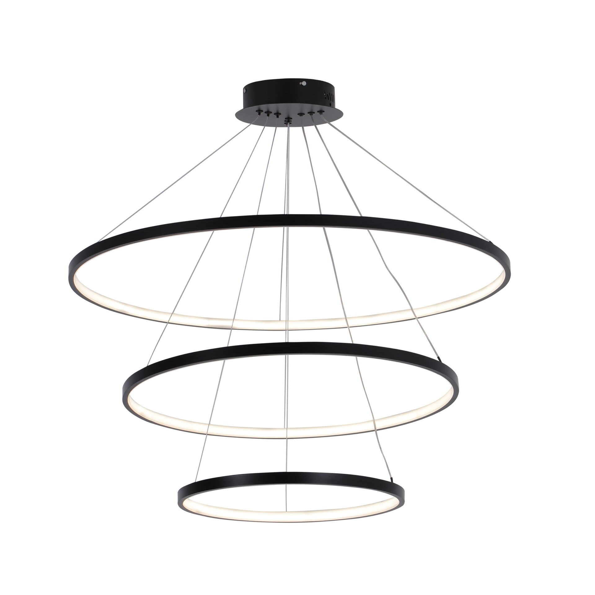 Подвесная люстра Goldlux Lea LED 3x82W 4000K — это эффектное современное решение для просторных интерьеров, сочетающее элегантный дизайн и мощное освещение. Три кольцевые LED-модули создают мягкий, равномерный свет со световым потоком 9200 лм, что прекрасно подходит для освещения больших помещений — гостиной, спальни или кухни.