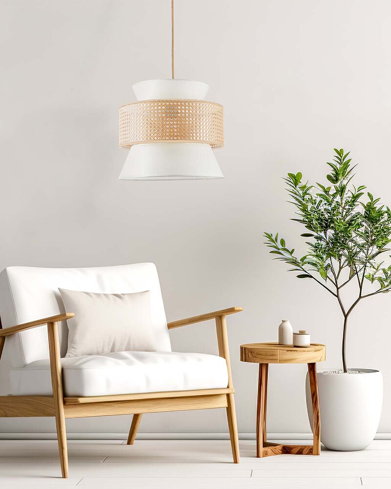 Подвесной светильник Goldlux 330482 Grenada E27 — это элегантная люстра в стиле бохо, которая наполнит интерьер теплом и естественной атмосферой. Конусообразный плафон из ротанга и текстиля в бежевом цвете выглядит стильно и уютно, делая светильник идеальным выбором для спальни, гостиной или кухни, особенно в качестве акцента над обеденным столом или зоной отдыха.