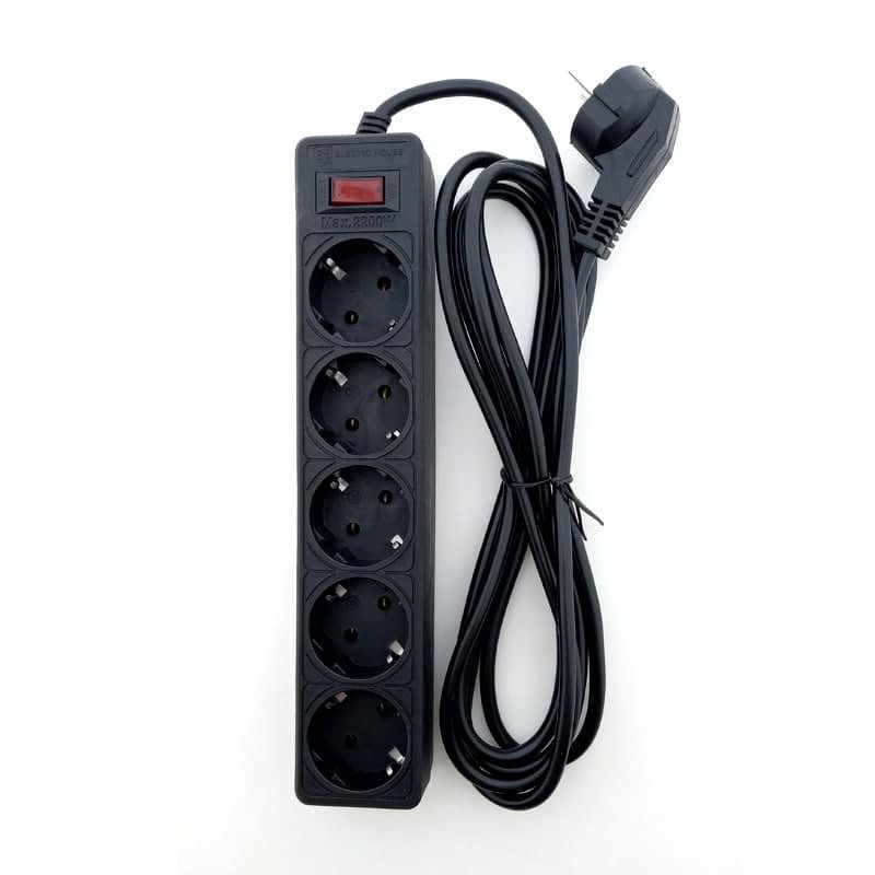 Сетевой фильтр-удлинитель ElectroHouse на 5 гнезд 10А 3 метра с заземлением и кнопкой черный EH-NFB-5.3