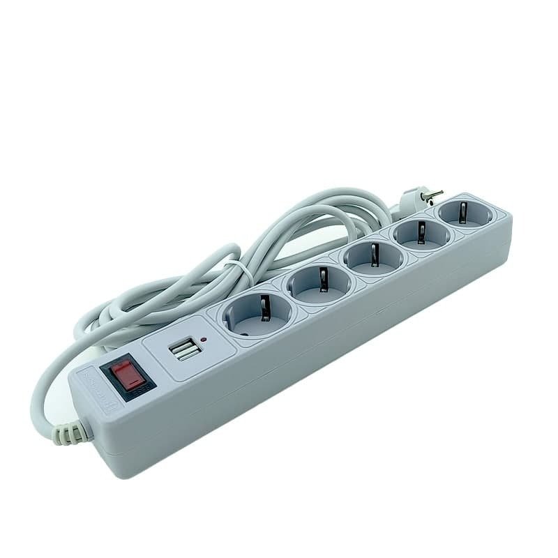 Сетевой фильтр с заземлением 5 гнезд + 2USB, 3 м, серый, защитные шторки EH-NFGU-5.3 от Electro House – это идеальный выбор для обеспечения безопасности ваших электроприборов. Благодаря современному дизайну и эргономичной конструкции этот фильтр обеспечивает не только эстетичный вид, но и надежную защиту для ваших устройств. Он позволяет включить несколько электроприборов в одну розетку одновременно, что делает его удобным для использования в домашних условиях или в офисе.