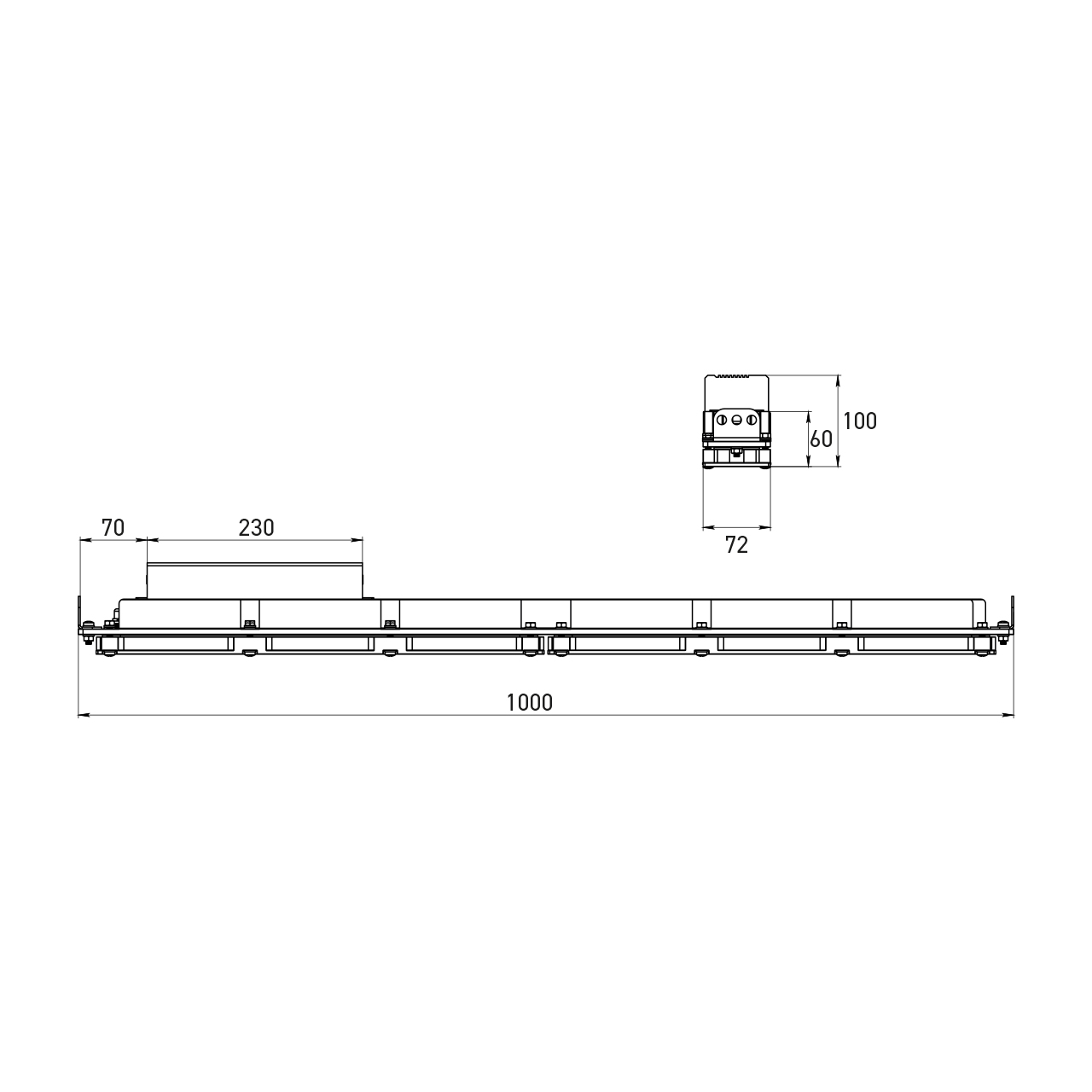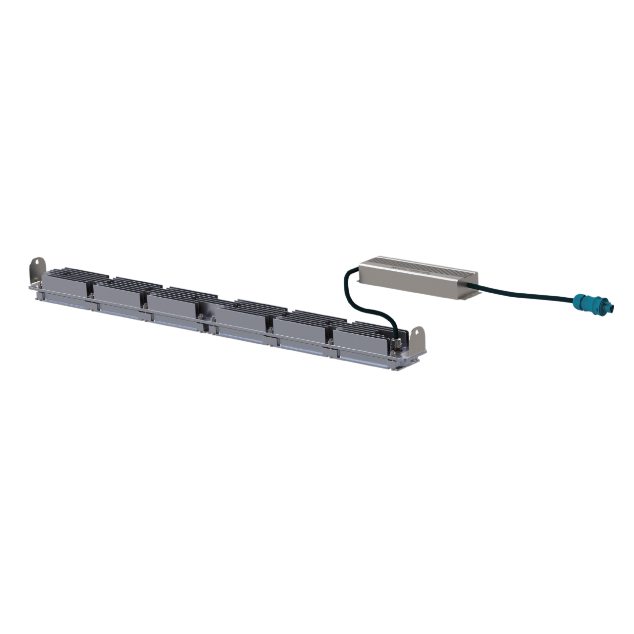 Корпус светильника из экструдированного алюминия с анодированным покрытием ≥ 20мкм, крышки дополнительно покрыты полиэфирной порошковой краской толщиной ≥ 80 мкм, все крепления из нержавеющей стали, питание через преобразователь (драйвер), кабель драйвера сштекером со степенью защиты IP67 и имеет I класс защиты от поражения электрическим током.