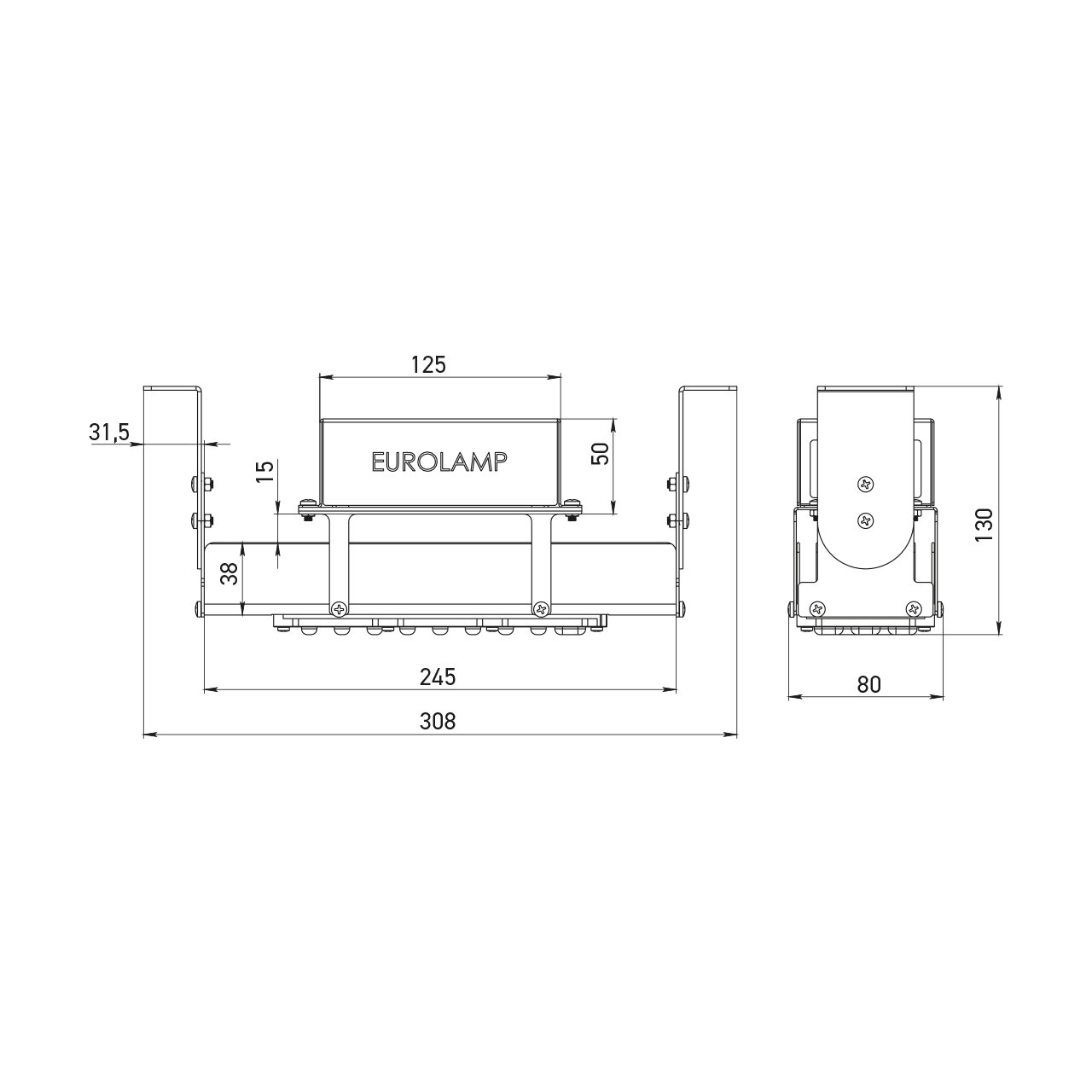 Светильники могут быть закреплены на строительных конструкциях или опорах кронштейнами и винтами М6х40 DIN 7985, или метрическими шпильками М8, гайками М8 DIN934.