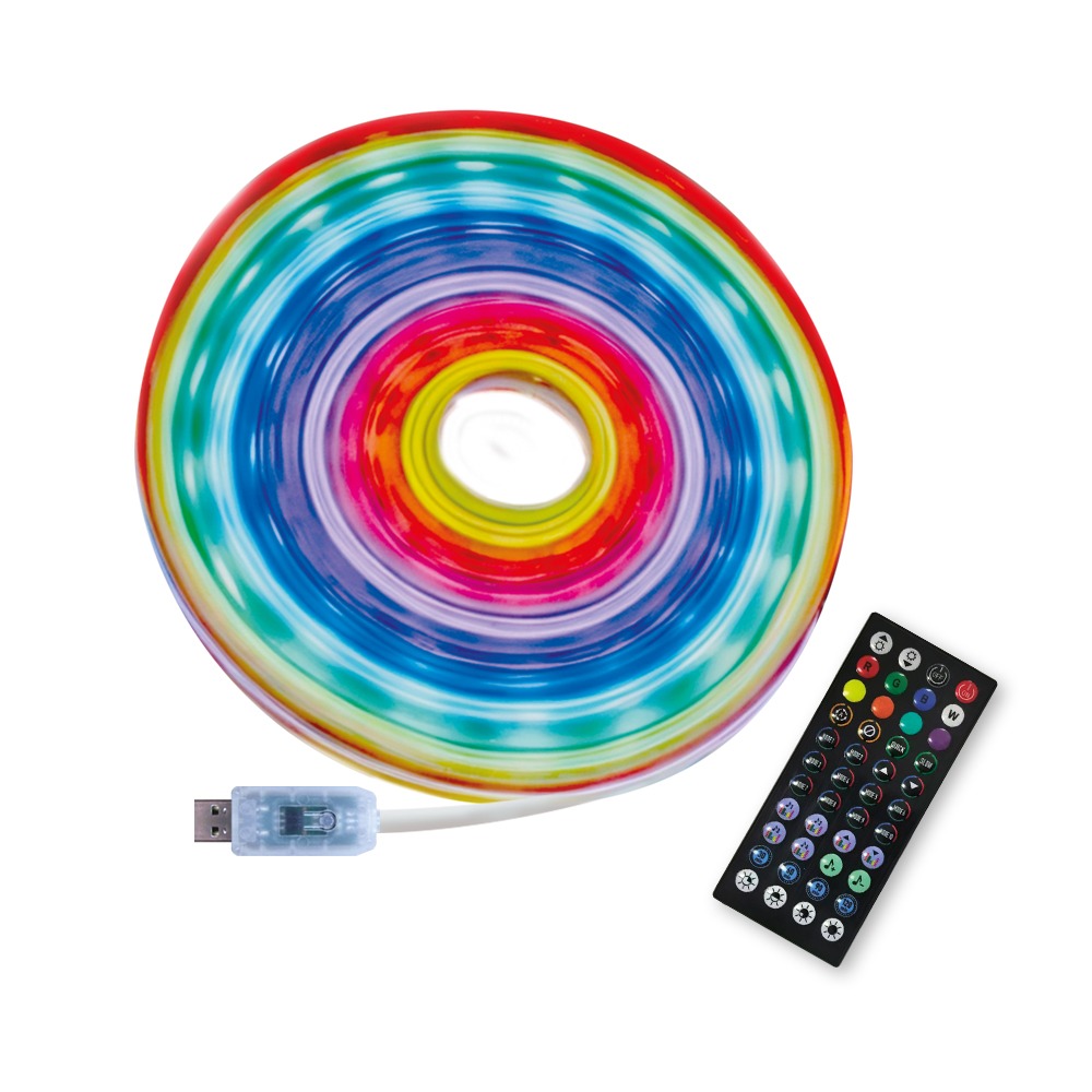 - Особенности: Регулировка яркости; Поддержка 16 млн цветов (RGB); Управление через приложение и пульт ДУ; Музыкальный режим (синхронизация со звуком); Влагозащита IP67 (водонепроницаемая)