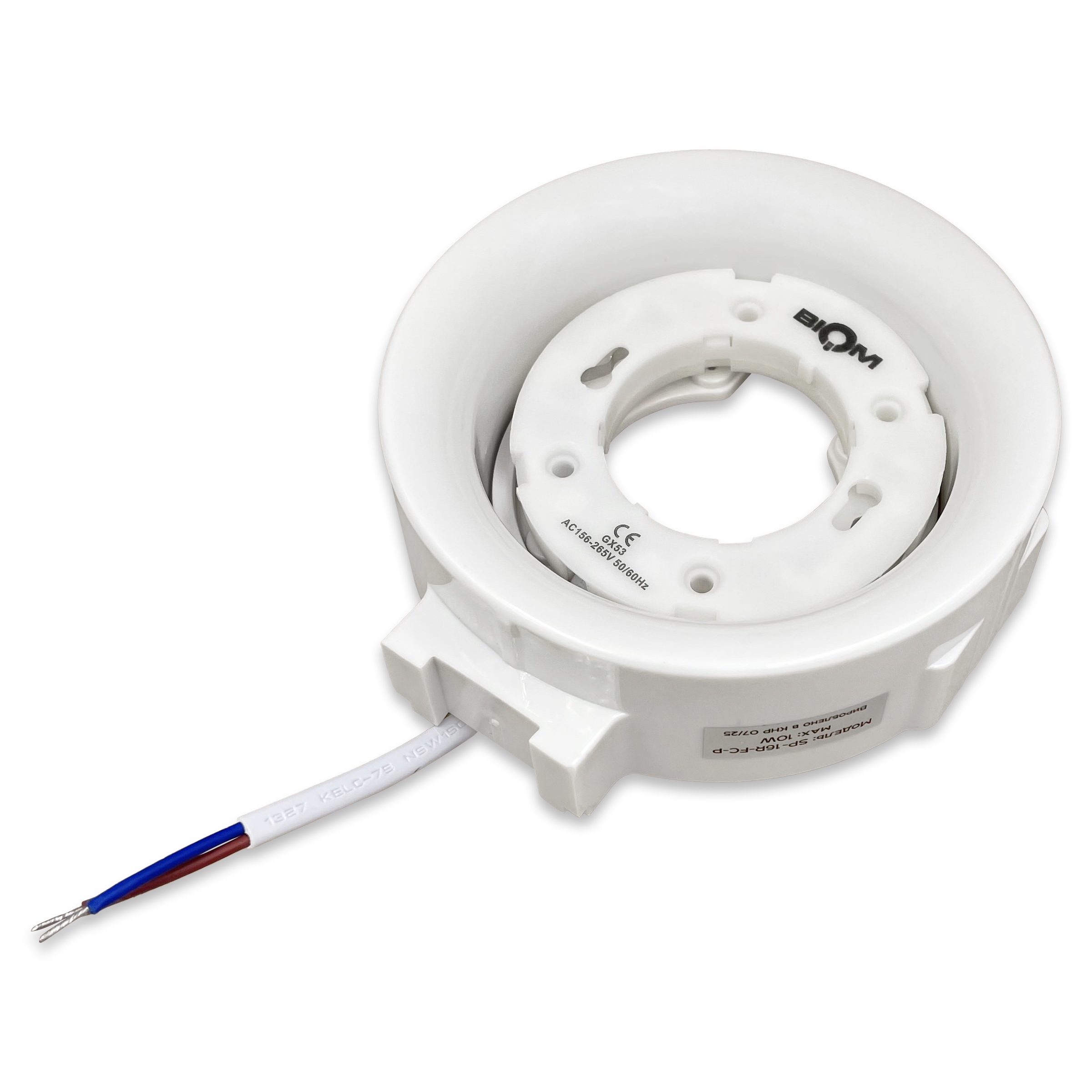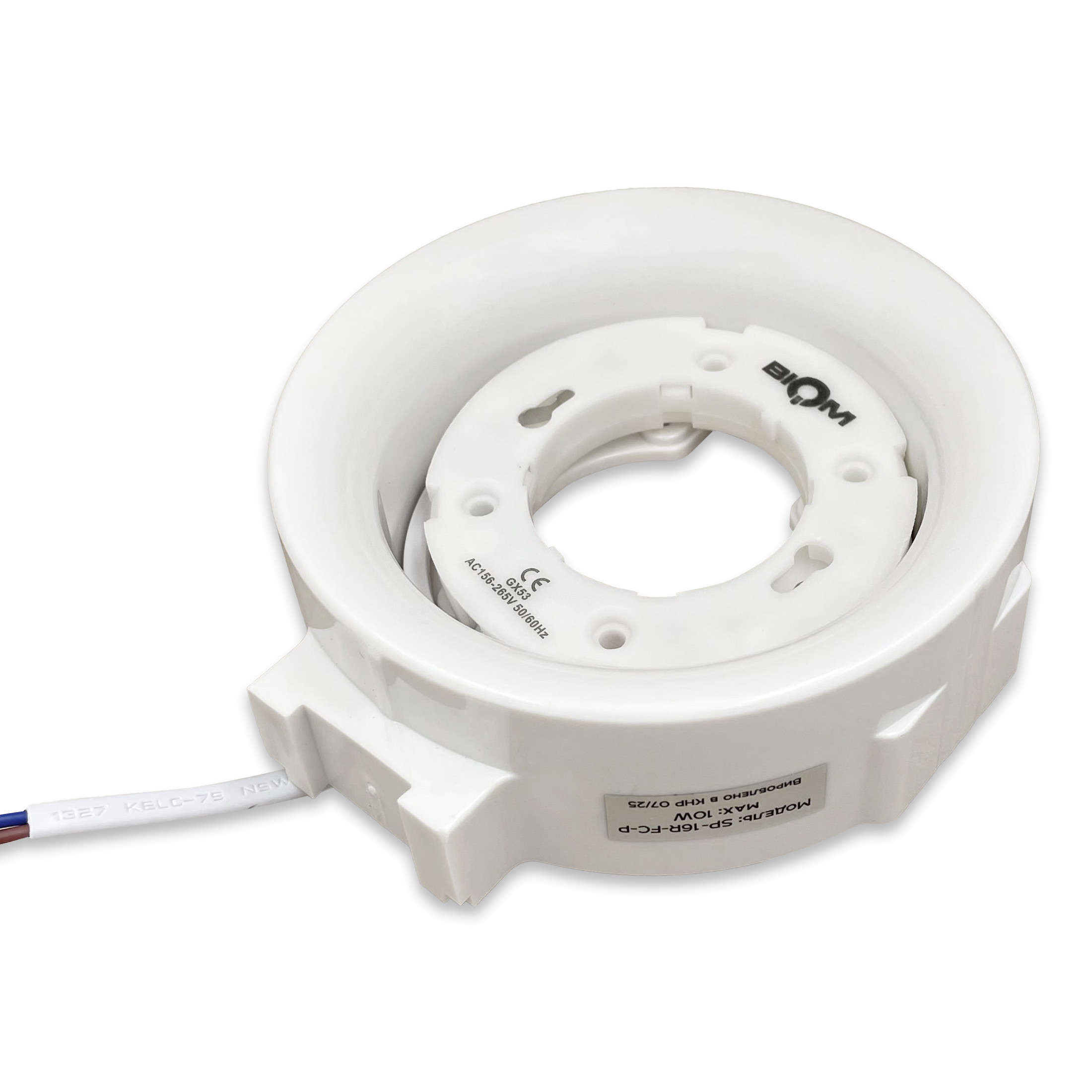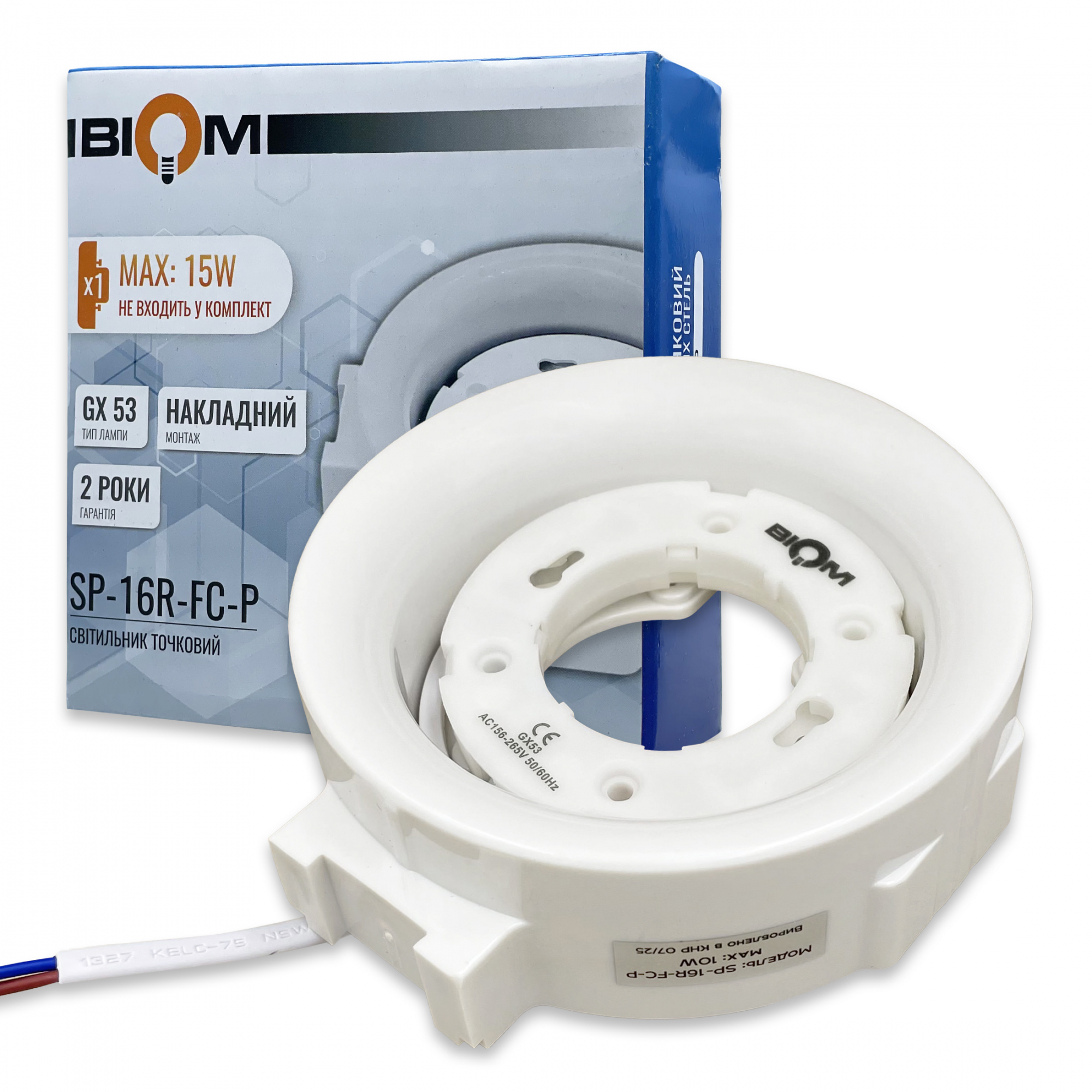 Точечный светильник Biom SP-16R-FC-P под LED лампу GX53, накладной, белый — стильное и универсальное решение для современного освещения. Благодаря лаконичному дизайну светильник гармонично сочетается с любым интерьером и прекрасно подходит для натяжных или гипсокартонных потолков. Корпус из качественного пластика обеспечивает легкость, долговечность и простоту монтажа.