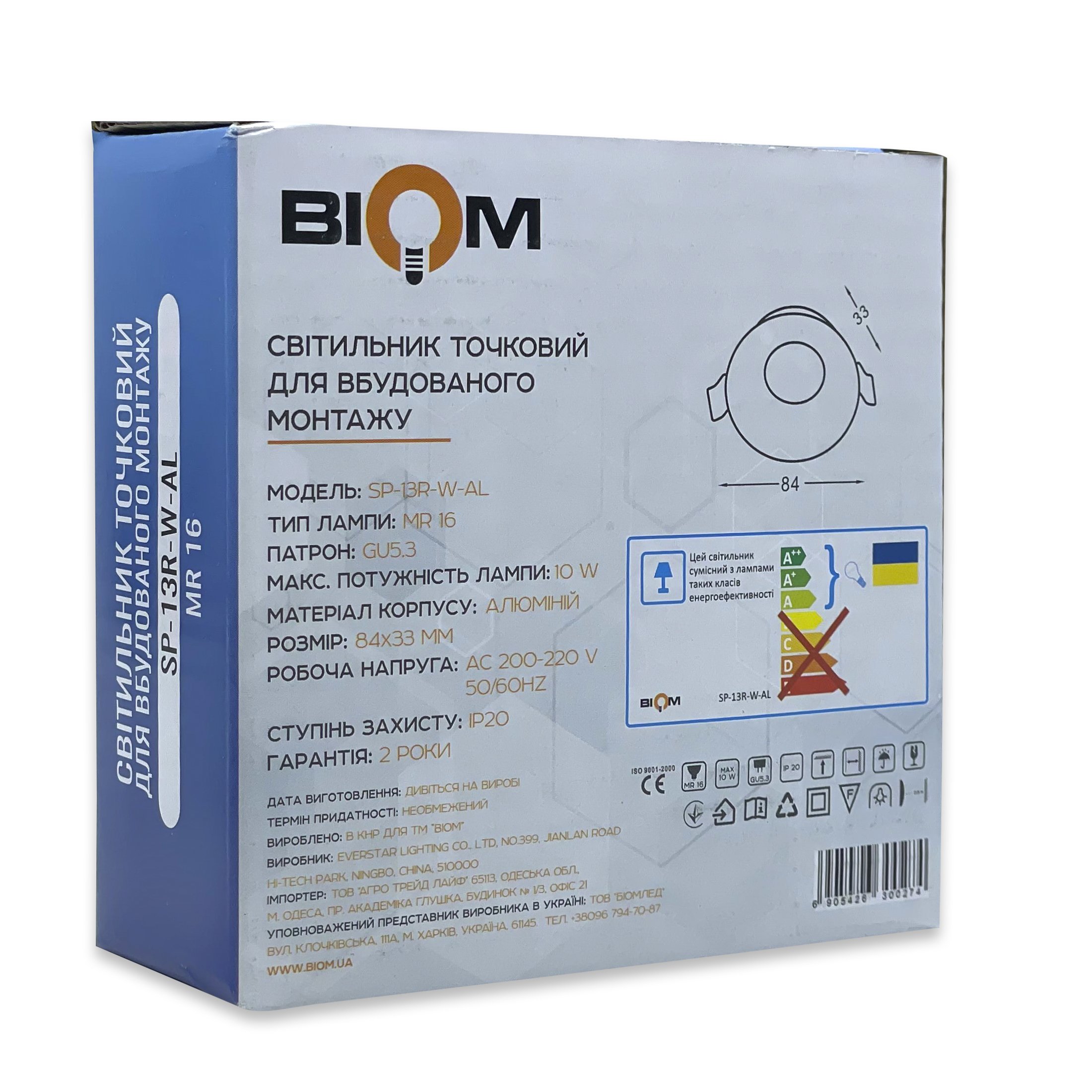 Точечный светильник Biom SP-13R-W-AL под LED лампу MR16/GU5.3, встраиваемый круглый (без лампы) — это стильное и надежное решение для создания современного освещения в любом интерьере. Его минималистичная форма и аккуратный дизайн позволяют легко интегрировать светильник в потолок из гипсокартона или натяжные системы, обеспечивая аккуратный вид и равномерное распределение света.