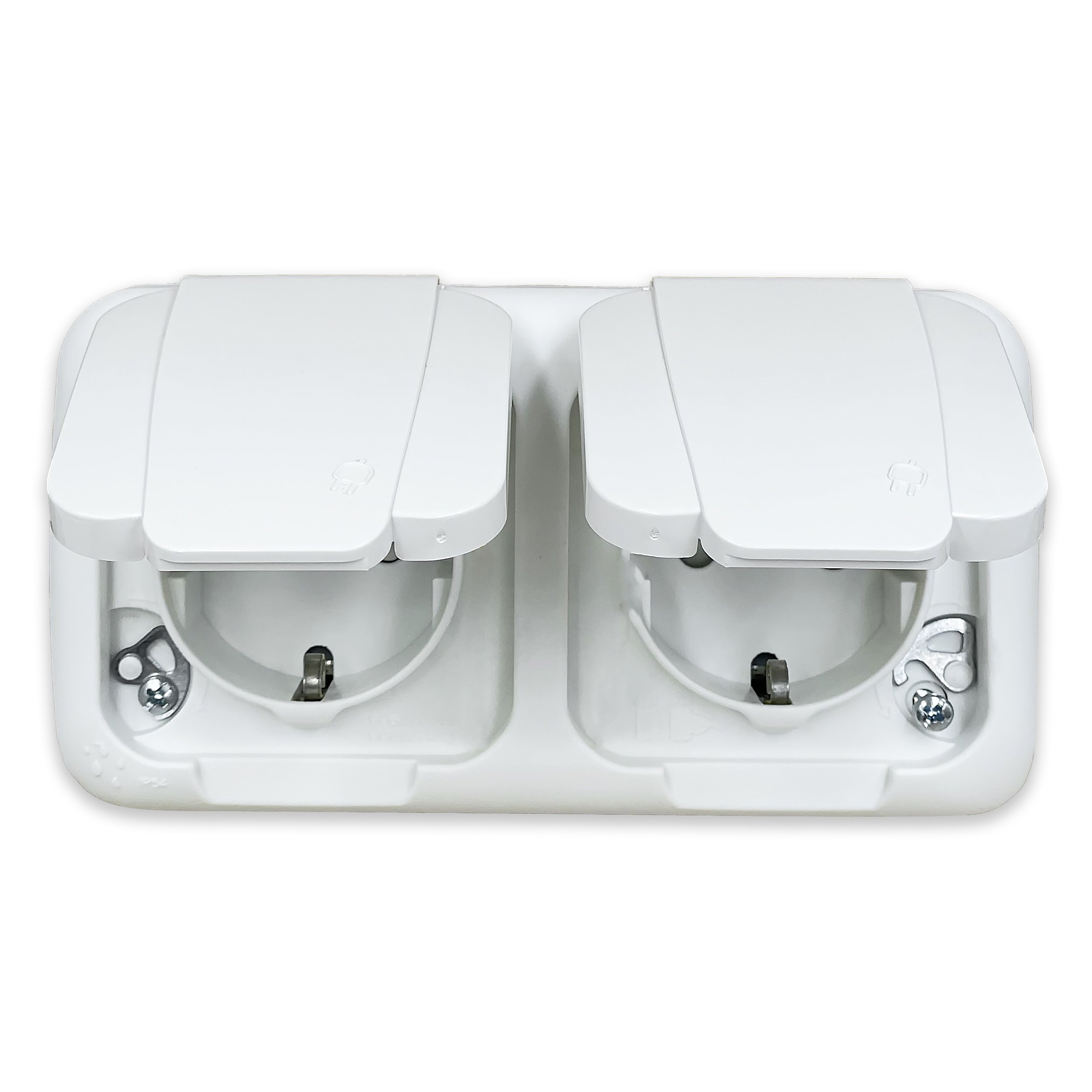 Розетка с заземлением и защитными шторками, с крышкой, наружная двойная Viko Palmiye 90555488