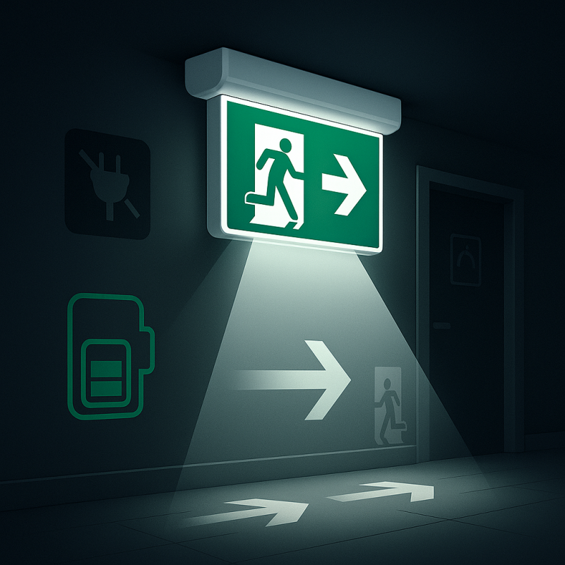 Вказівники евакуації. Однобічні/двобічні, змінні стрілки, читабельність у холах і на проходах.