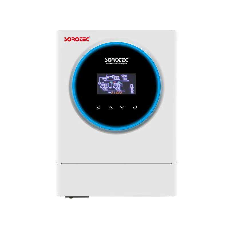 Інвертор SOROTEC це електронний пристрій, що перетворює постійну напругу акумуляторної батареї та сонячних панелей (DC) на однофазну змінну напругу 220В з частотою 50 Гц (AC), аналогічну до напруги побутової мережі змінного струму. Цей інвертор також виконує функцію зарядного пристрою для заряджання акумулятора від побутової мережі змінного струму.