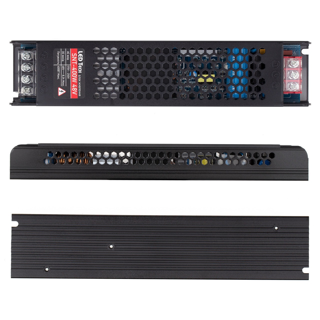 Імпульсний блок живлення перетворює змінну напругу 220 в постійну напругу 48в з максимальним навантаженням 8,3а. Блок належить до преміального сегмента серії "SNT" має гарантію 24 місяці. Серія "SNT" має захист від короткого замикання, захист від перевантаження та перегрівання. Під час виробництва використовуються тільки якісні комплектуючі: синій двошаровий промисловий текстоліт, високоякісний трансформатор із чистої міді, конденсатори >50000ч, фільтр захисту від перешкод, алюмінієвий корпус для кращого тепловідведення.