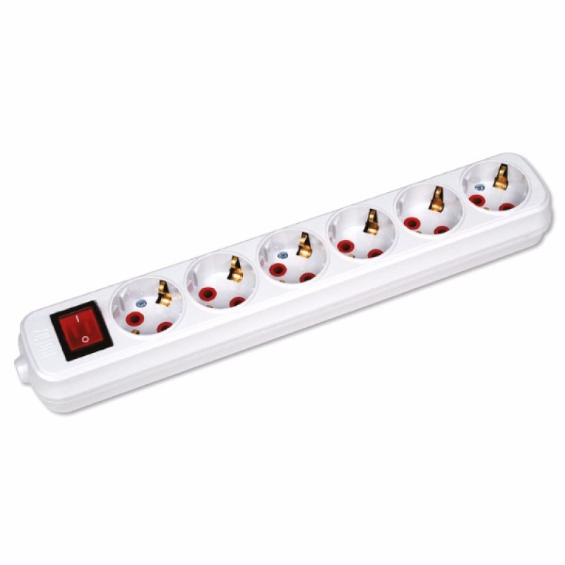 Колодка Horoz 6 гнізд з заземленням та кнопкою біла 200-600-602