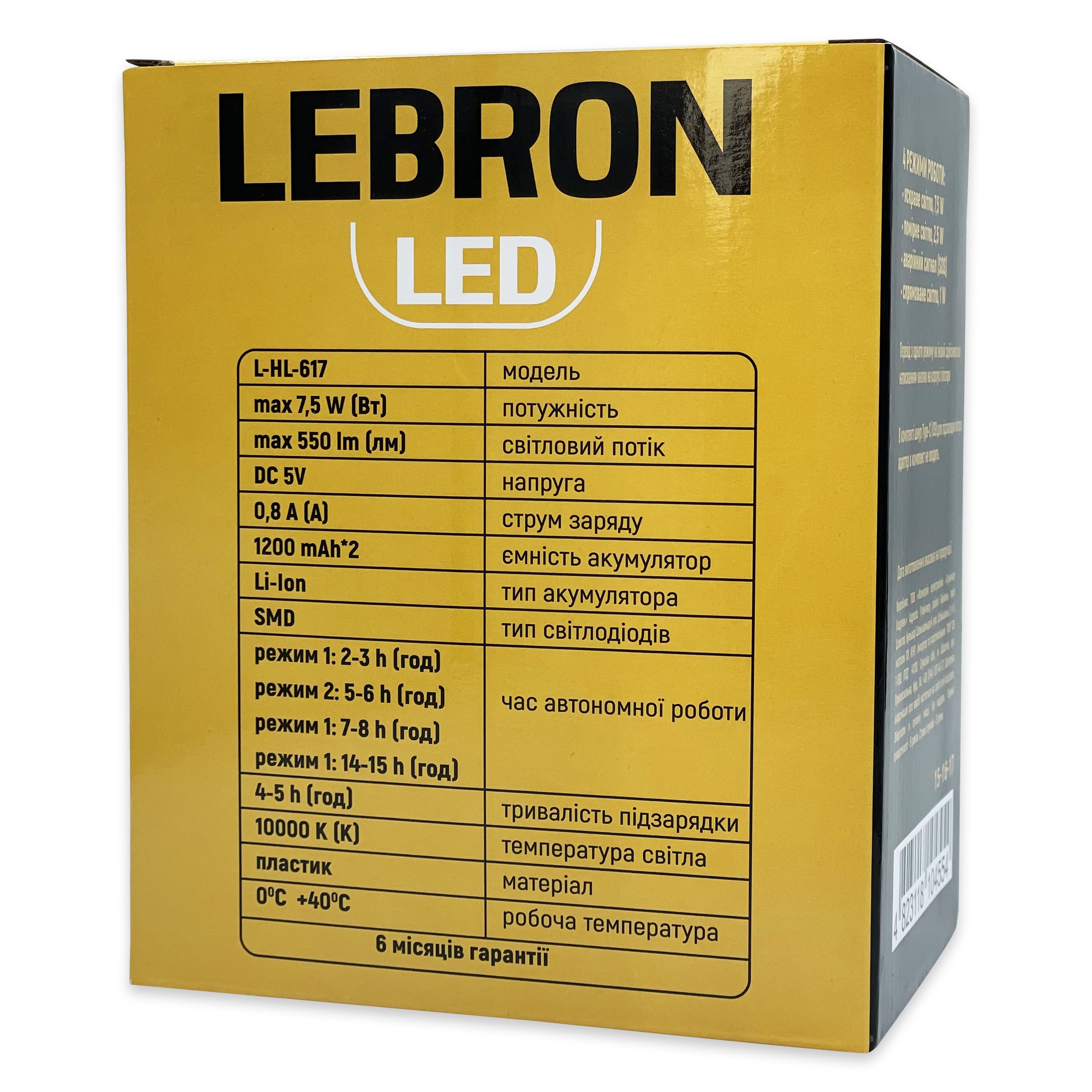 Портативний світлодіодний акумуляторний ліхтар Lebron L-HL-617 – це компактний та універсальний пристрій, призначений для використання в домашніх умовах, у подорожах або на природі. Цей ліхтар має яскравий світлодіод потужністю 7.5 Вт, який забезпечує якісне освітлення. Вбудований акумулятор ємністю 1200 мАг гарантує тривалу роботу без необхідності заміни батарей, що робить його зручним та економічним рішенням.