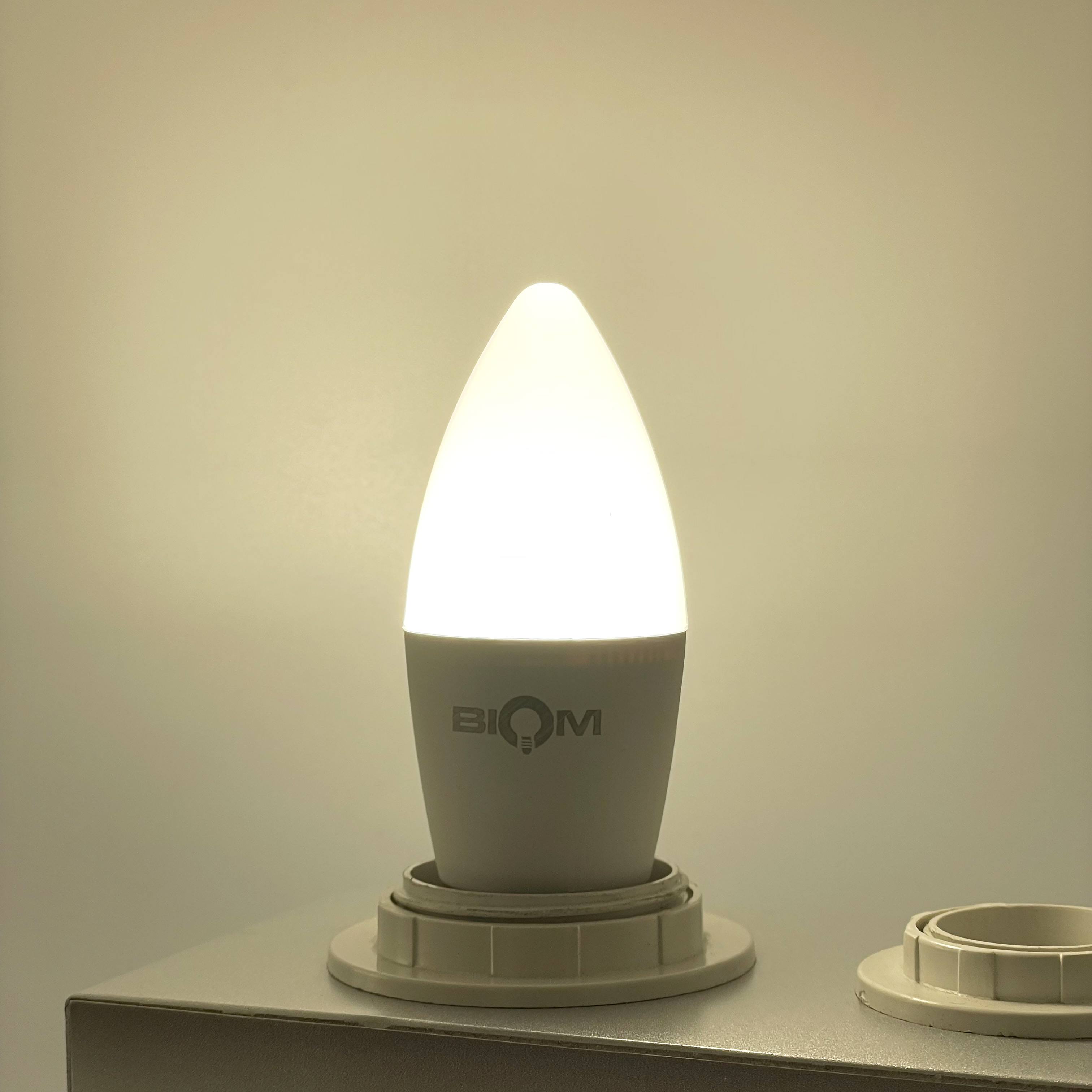 Світлодіодна лампа Biom BT-706 C37 10W E27 4500K - енергоефективне рішення для щоденного освітлення дому, офісу чи комерційних приміщень. Вона споживає лише 10 Вт, замінюючи традиційну лампу розжарювання потужністю до 80 Вт, при цьому забезпечує яскраве й рівномірне світло. Завдяки колбі у формі “свічки” (C37) і стандартному цоколю E27, лампа підходить для більшості світильників — від настільних до стельових. Матова поверхня забезпечує м’яке розсіювання світла, без різких тіней та мерехтіння.