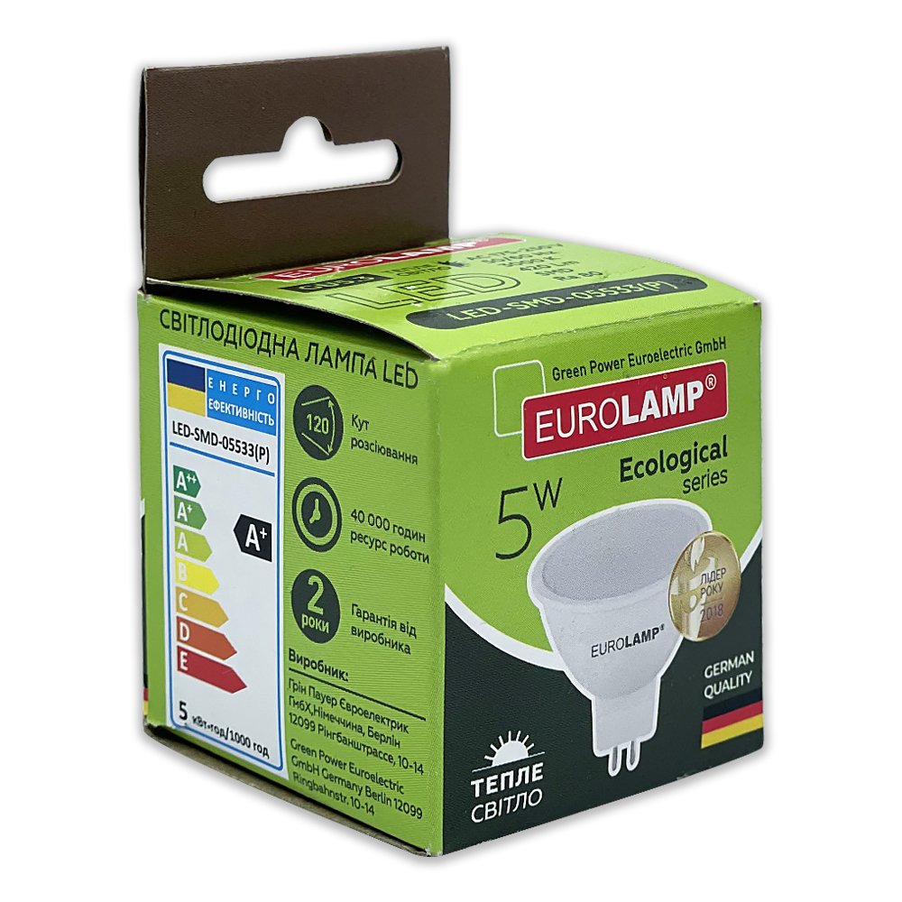 Світлодіодна LED лампа Eurolamp ECO серія "P" MR16 5W GU5.3 3000K LED-SMD-05533(P)