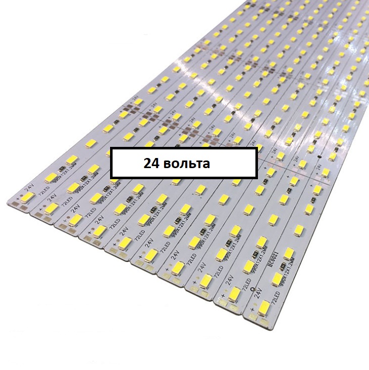 LED лінійка виготовлена із застосуванням яскравих світлодіодів SMD 5630, розміром 5,6 мм на 3 мм. Лінійки на 24v не так гріються, як лінійки на 12v, позаяк у них менший струм в провідниках. Діоди 5630 вигідно відрізняються від світлодіодів SMD5050, тим, що вони мають вищу світловидатність на ват. Лінійка має 72 діода на метр, замість 60 як у стрічки 5050, випромінює рівномірніше світіння. Це надає можливість використовувати цю тип лінійки як основне освітлення. Лінійка належить до серії стандартів, має високу яскравість і терміном експлуатації до 30000 годин.