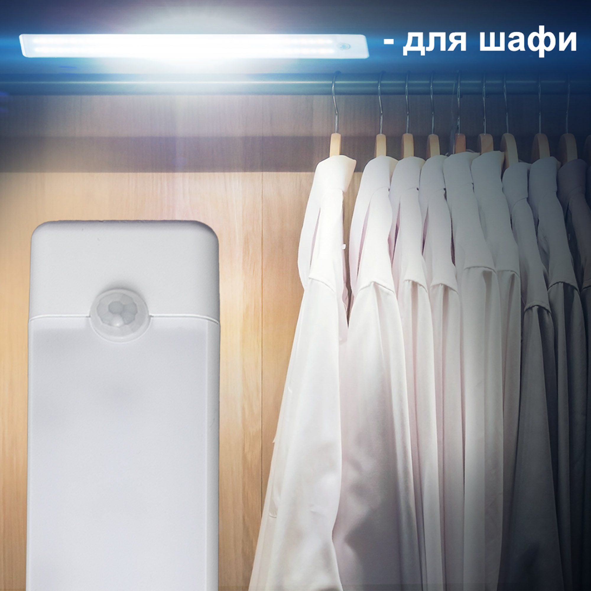 Реакція на рух у темряві — вмикається лише за недостатнього освітлення, зручно для гардеробних, шаф, підсобок або як нічне світло в загальних приміщеннях.