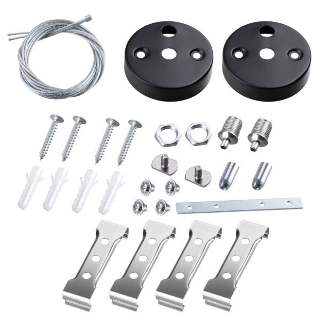 - Підвіси на тросах до 1 м дають змогу відрегулювати висоту або закріпити безпосередньо на стелі й задати потрібний напрям світла.