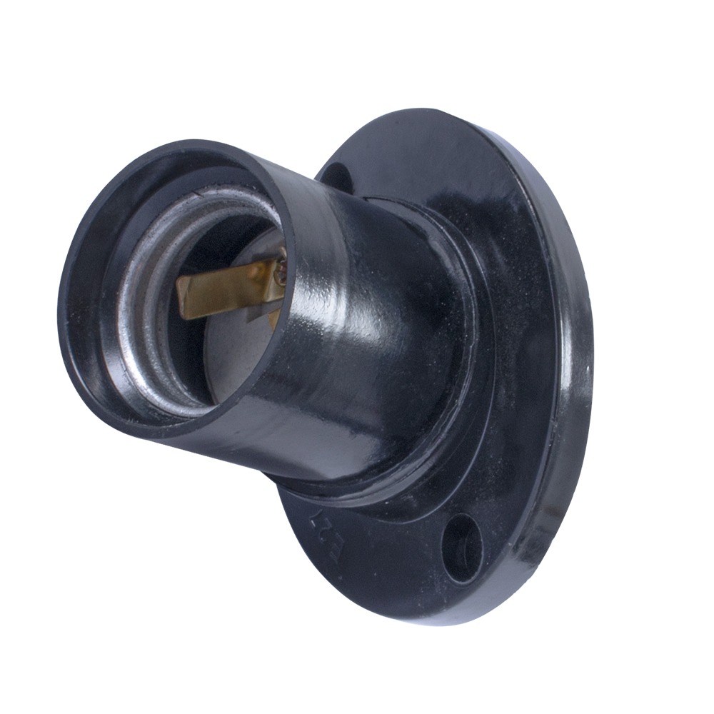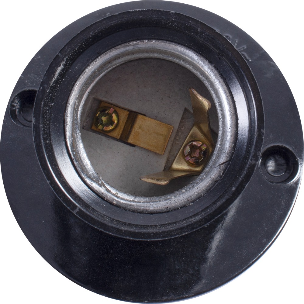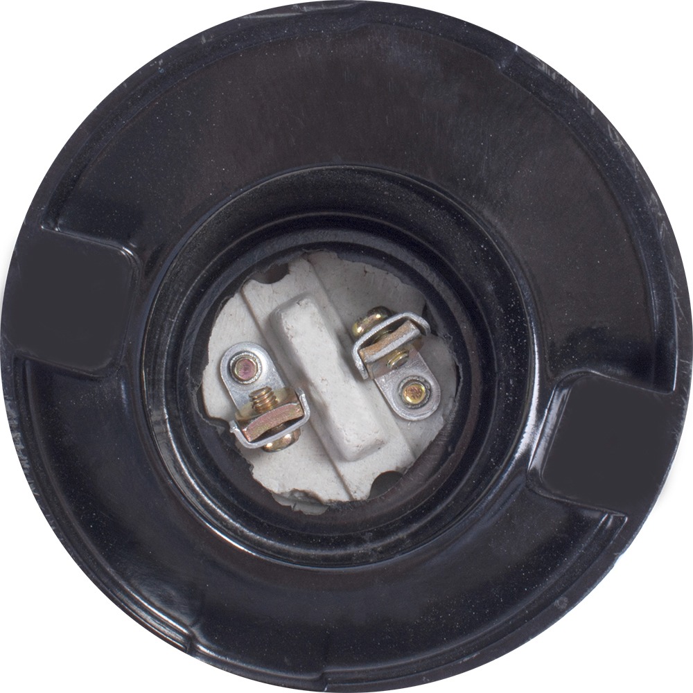 Бакелітовий корпус відзначається електроізоляційними та термостійкими властивостями, що робить патрон стійким до нагріву та впливу зовнішніх факторів. Чорний колір дозволяє органічно інтегрувати виріб у технічні, індустріальні або стилізовані під loft інтер’єри. Монтаж виконується без складнощів, а конструкція забезпечує безпечний контакт і стабільну роботу.