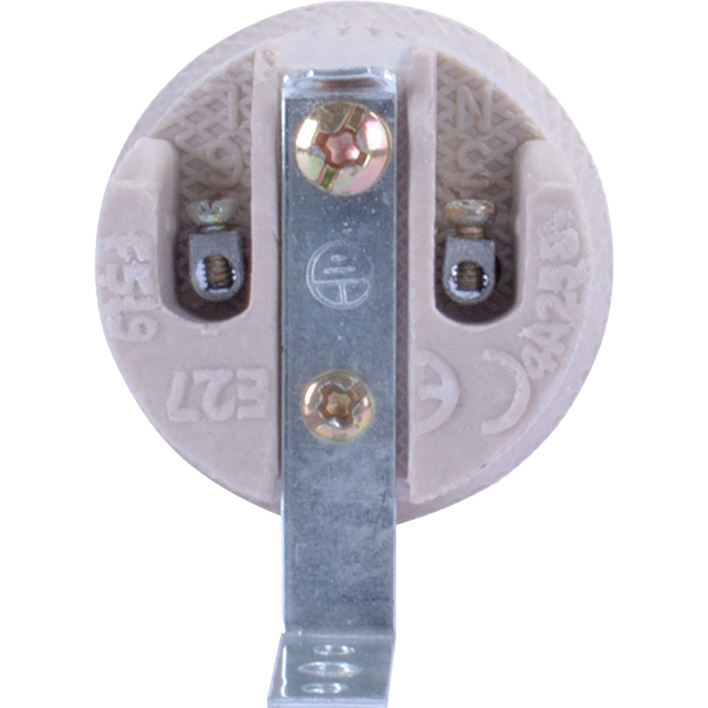 Патрон оснащений металевою пластиною для бокового кріплення, що полегшує монтаж у різні типи освітлювальних конструкцій. Підключення проводу здійснюється через гвинтовий затискач – просте та безпечне рішення для надійної фіксації провідників.