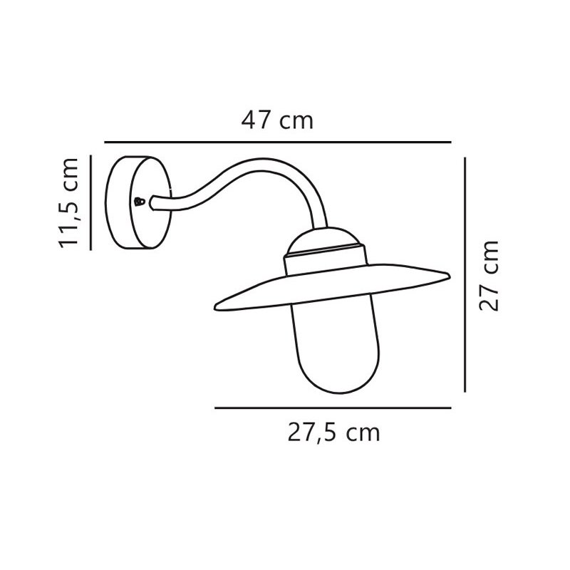 Настінне встановлення дозволяє забезпечити направлене освітлення, що підсилює візуальне сприйняття архітектури. Форма плафону — конус, сприяє концентрації світла без надмірного розсіювання. Виконання з металу та скла формує захист від корозії та впливу зовнішніх факторів. Світильник не обладнаний вимикачем, але підтримує димування за умови застосування відповідної лампи E27 до 60 Вт. Плафон фіксований, без функції повороту.