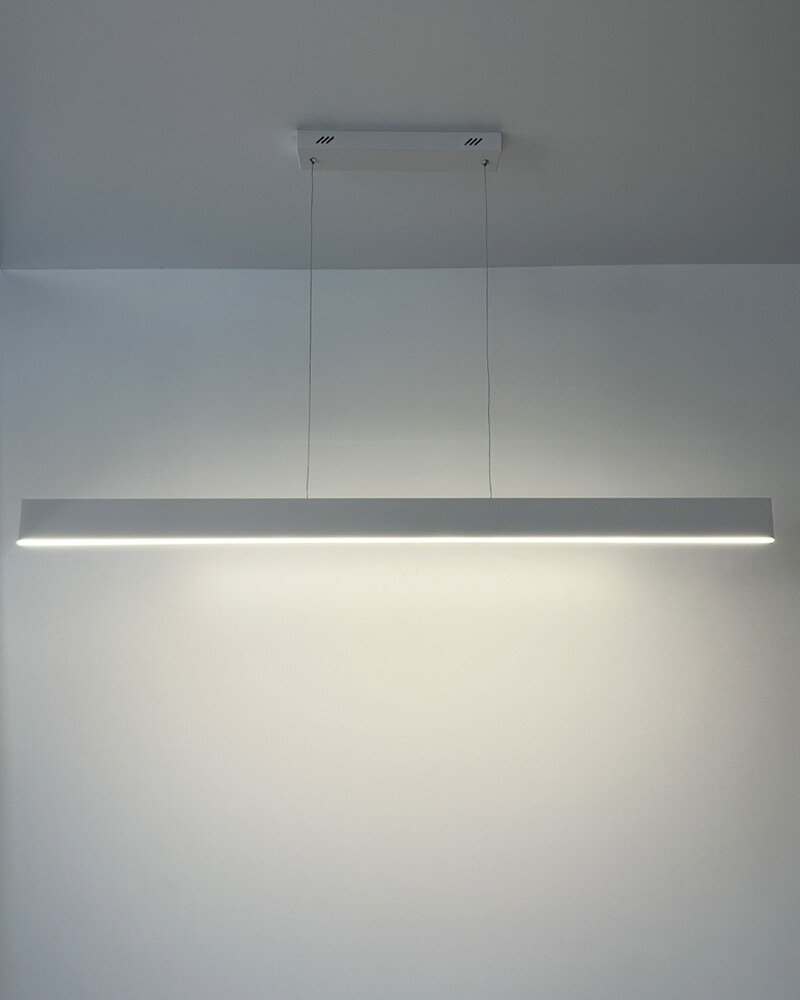 Світильник виготовлений із міцного металу та алюмінію, що гарантує довговічність і стабільну експлуатацію. Один LED-модуль забезпечує енергоефективність, точну передачу кольору та економне споживання електроенергії. Завдяки продуманій конструкції люстра легко монтується та може використовуватися як основне або додаткове джерело світла в житлових і робочих приміщеннях.