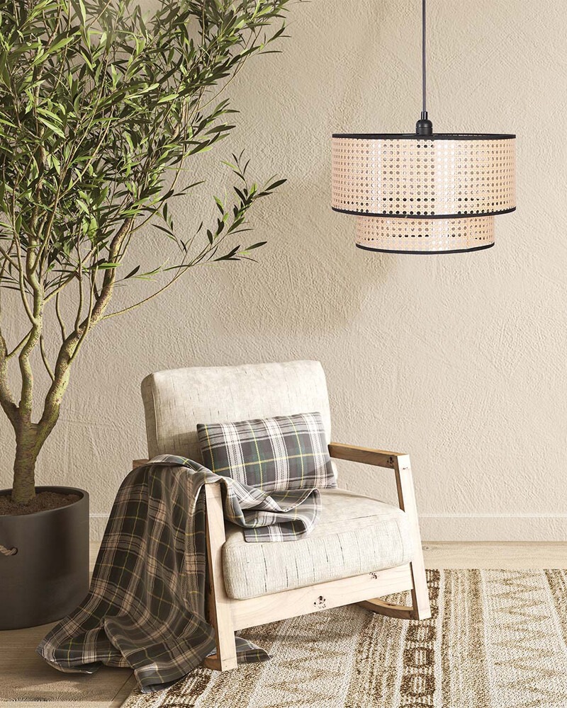 Підвісний світильник Goldlux Takara E27 — це стильна люстра у бохо-стилі, яка створює теплу й затишну атмосферу в інтер’єрі. Бежевий плафон циліндричної форми з натурального ротангу виглядає легко та повітряно, додаючи простору природної естетики. Світильник чудово підійде для спальні, вітальні або кухні, особливо як акцент над обіднім столом чи зоною відпочинку.