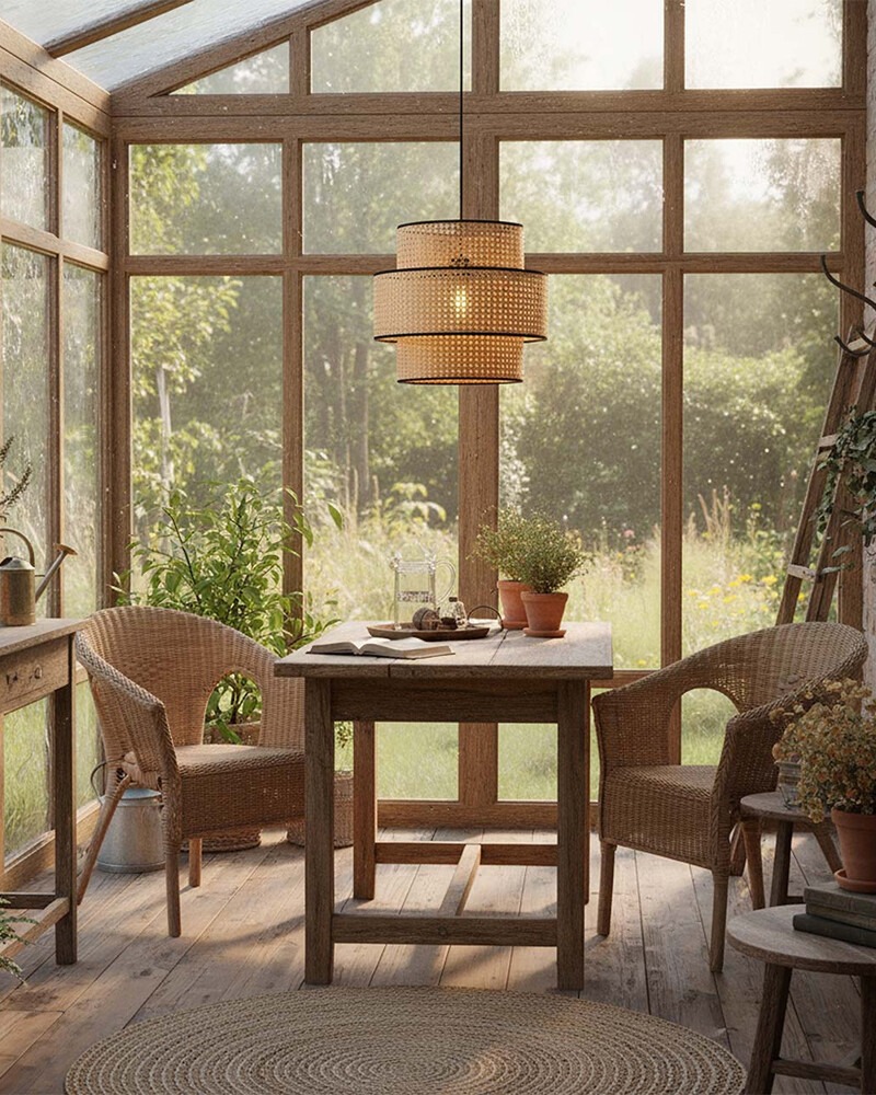 Модель розрахована на одну лампу з цоколем E27 потужністю до 20 W, що дає можливість обрати джерело світла з потрібною яскравістю та температурою — від теплого до нейтрального. Металева основа забезпечує надійність конструкції, а ротанговий плафон м’яко розсіює світло, створюючи приємне, не різке освітлення. Ступінь захисту IP20 підходить для використання у сухих приміщеннях.