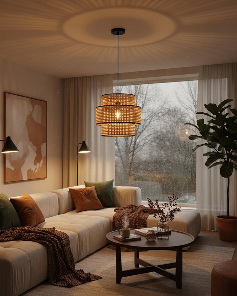 Підвісний світильник Goldlux Takara E27 — це стильна люстра у бохо-стилі, яка створює теплу й затишну атмосферу в інтер’єрі. Бежевий плафон циліндричної форми з натурального ротангу виглядає легко та повітряно, додаючи простору природної естетики. Світильник чудово підійде для спальні, вітальні або кухні, особливо як акцент над обіднім столом чи зоною відпочинку.