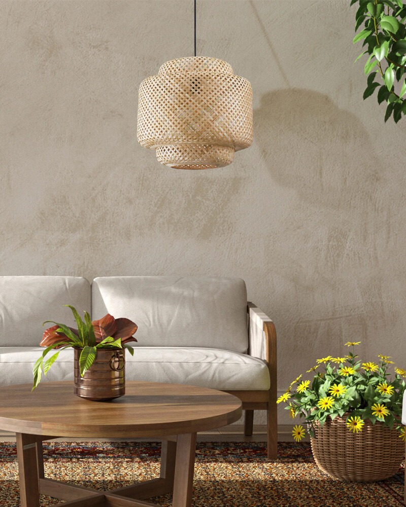 Підвісний світильник Goldlux 330635 Berta — це стильне рішення в стилі бохо, яке поєднує натуральні матеріали та теплу кольорову гаму. Бежевий плафон із бамбука м’яко розсіює світло, створюючи затишну атмосферу в інтер’єрі. Світильник гармонійно впишеться в кухню, вітальню або спальню, додаючи простору природності та елегантності.