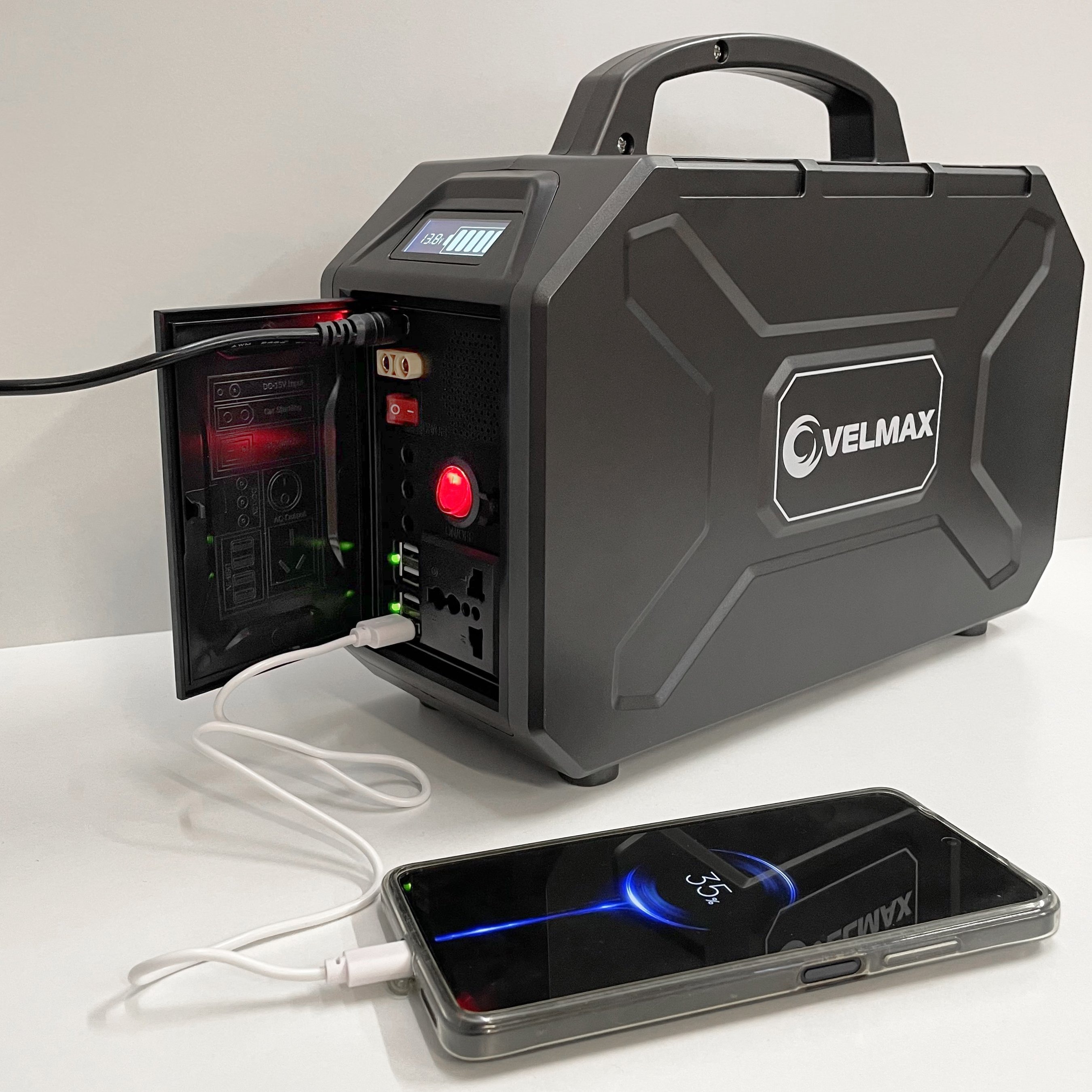 Портативна зарядна станція VELMAX V-PPS-200sp — надійне джерело автономного живлення для дому, дачі, подорожей та відпочинку на природі. Вона дозволяє живити побутові прилади, заряджати смартфони, ноутбуки, освітлювальні прилади та іншу електроніку навіть у місцях без доступу до мережі.