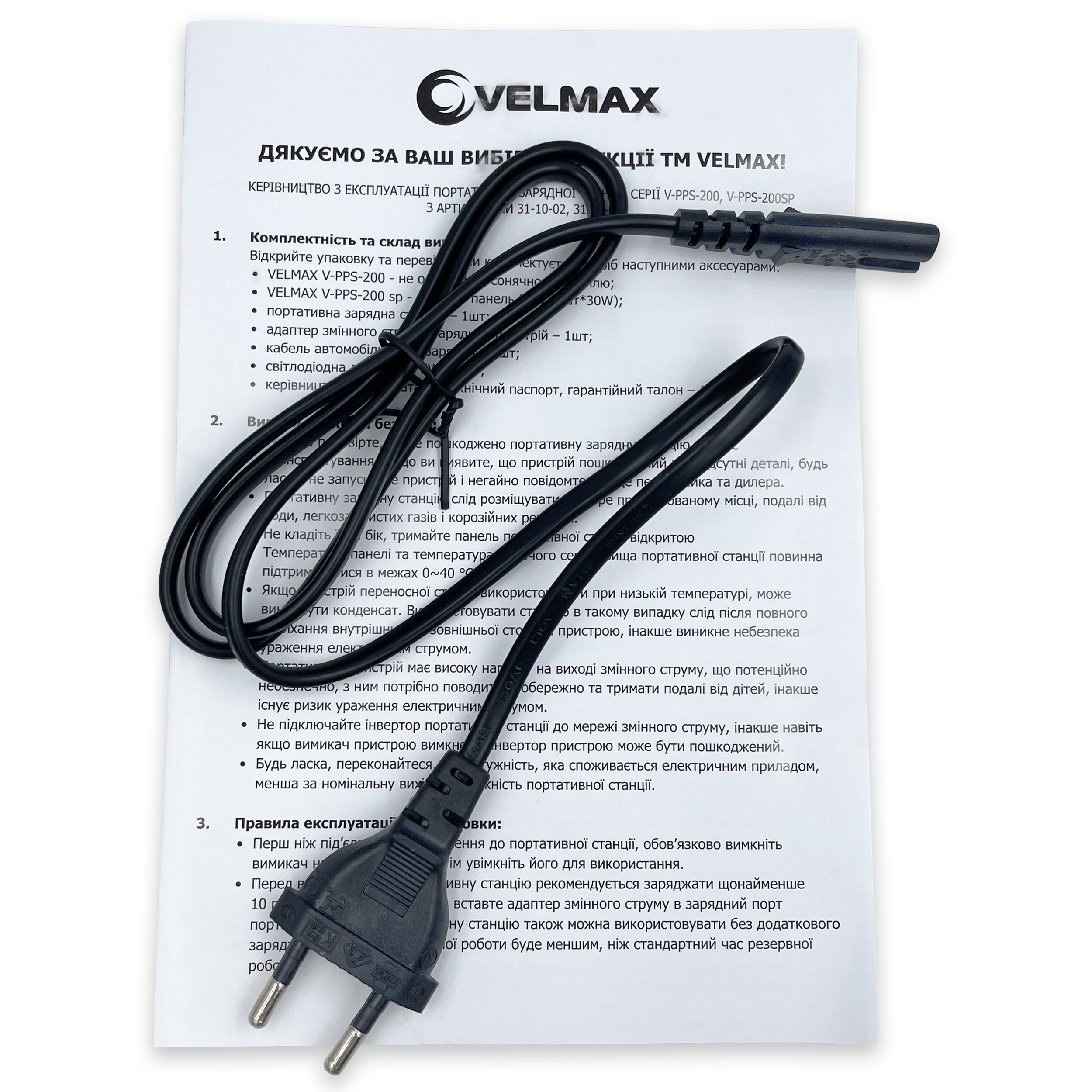 Портативна зарядна станція Velmax V-PPS-200sp 200W із сонячною панеллю 3×30W 31-10-02