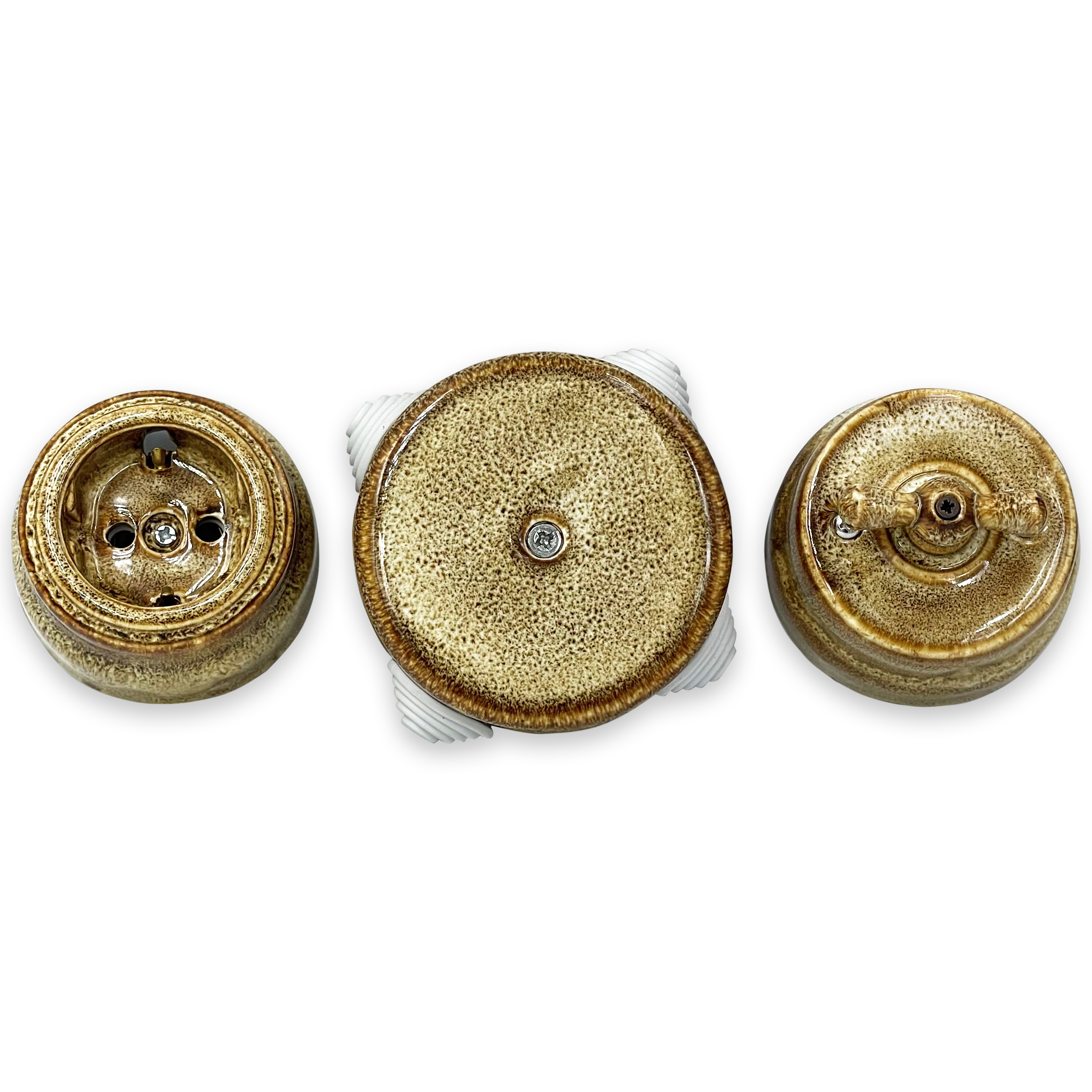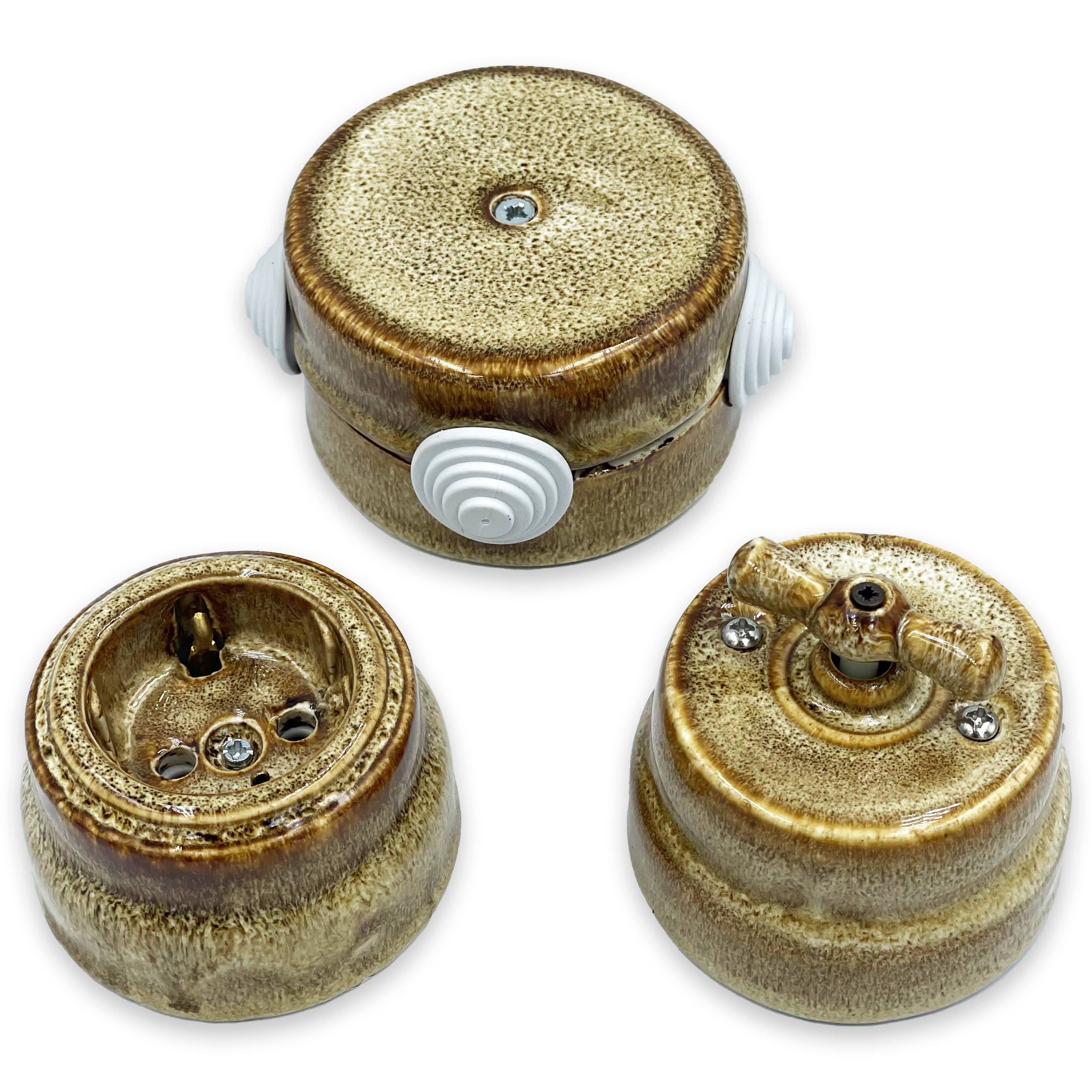 Розетка накладна із заземленням RE «Kraft» керамічна «Сафарі» RE-44317808 – надійний електроустановлювальний виріб у стильному ретро-дизайні. Вона вдало поєднує сучасну функціональність із автентичним зовнішнім виглядом і чудово підходить для інтер’єрів у стилі ретро, кантрі, класика, вінтаж або прованс.