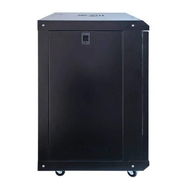 Шафа оснащена 12U стандартних роз'ємних монтажних полиць, що дозволяє легко розмістити серверне обладнання. Кромка полиць обладнана спеціальними отворами для проведення кабелювання, що дозволяє забезпечити організований порядок підключень. Також шафа оснащена коліщатками, що дає їй мобільності та ефективного використання.Чорний колір шафи додає сучасний вигляд і дозволяє гармонійно вписатися в будь-який інтер'єр.