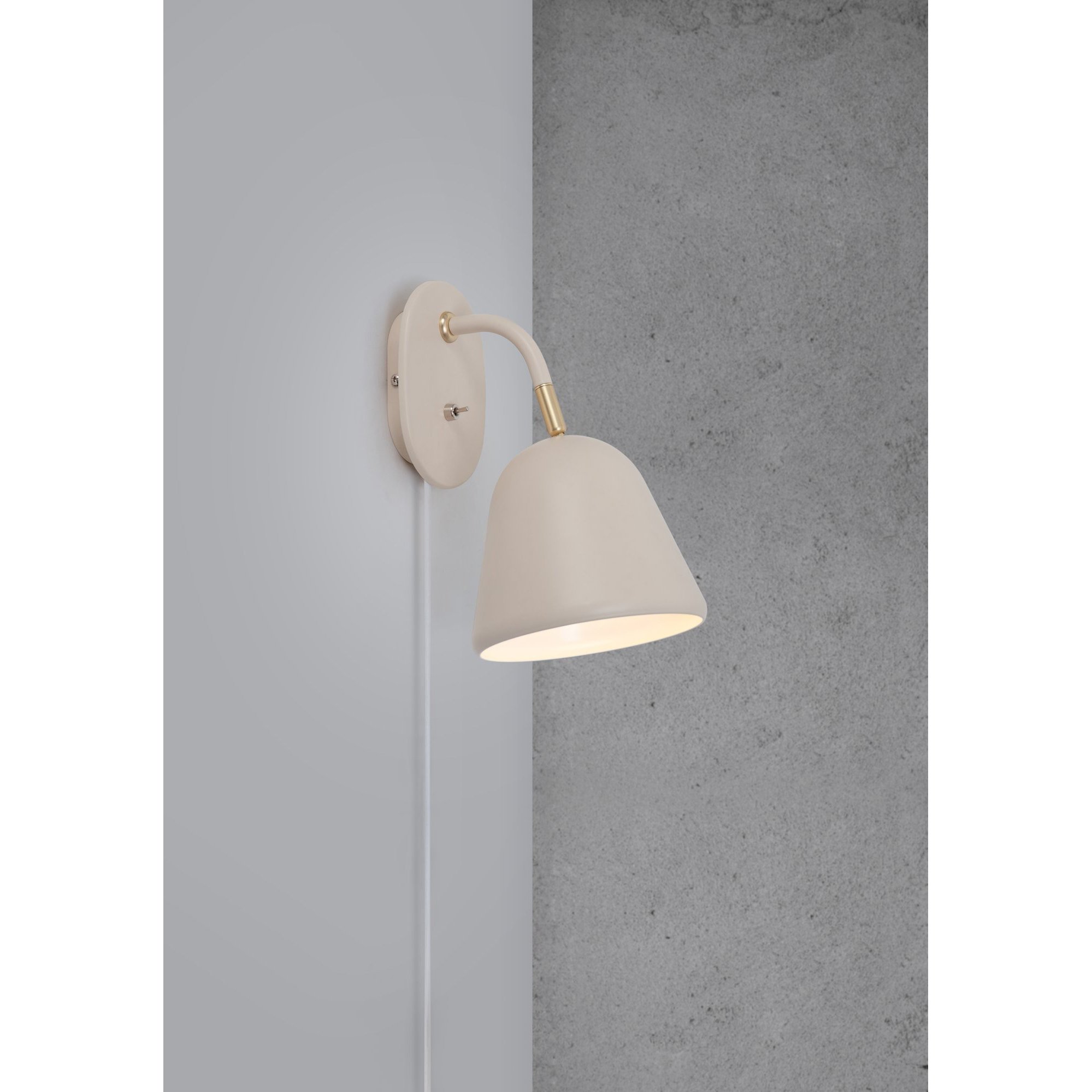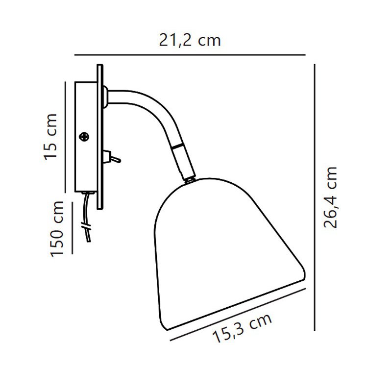 Світильник оснащено зручним кнопковим вимикачем на корпусі та поворотним плафоном, що дозволяє легко змінювати напрямок світла — ідеальне рішення для читання біля ліжка або створення м’якого акцентного освітлення. Підключення здійснюється безпосередньо до розетки, що робить монтаж максимально простим.
