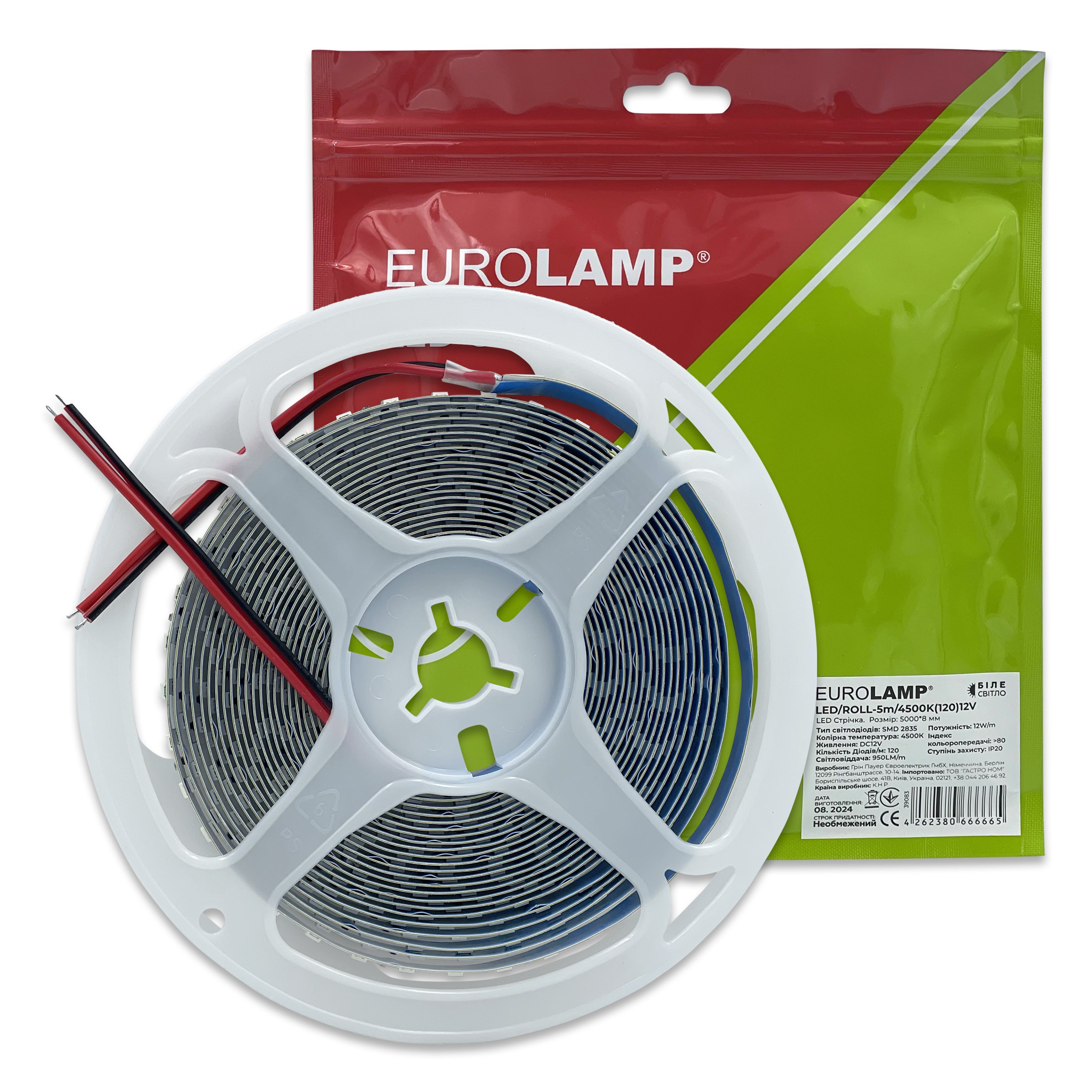 LED стрічка Eurolamp SMD2835 120шт/м 12W/м IP20 12V 4500K LED/ROLL-5m/4500K(120)12V