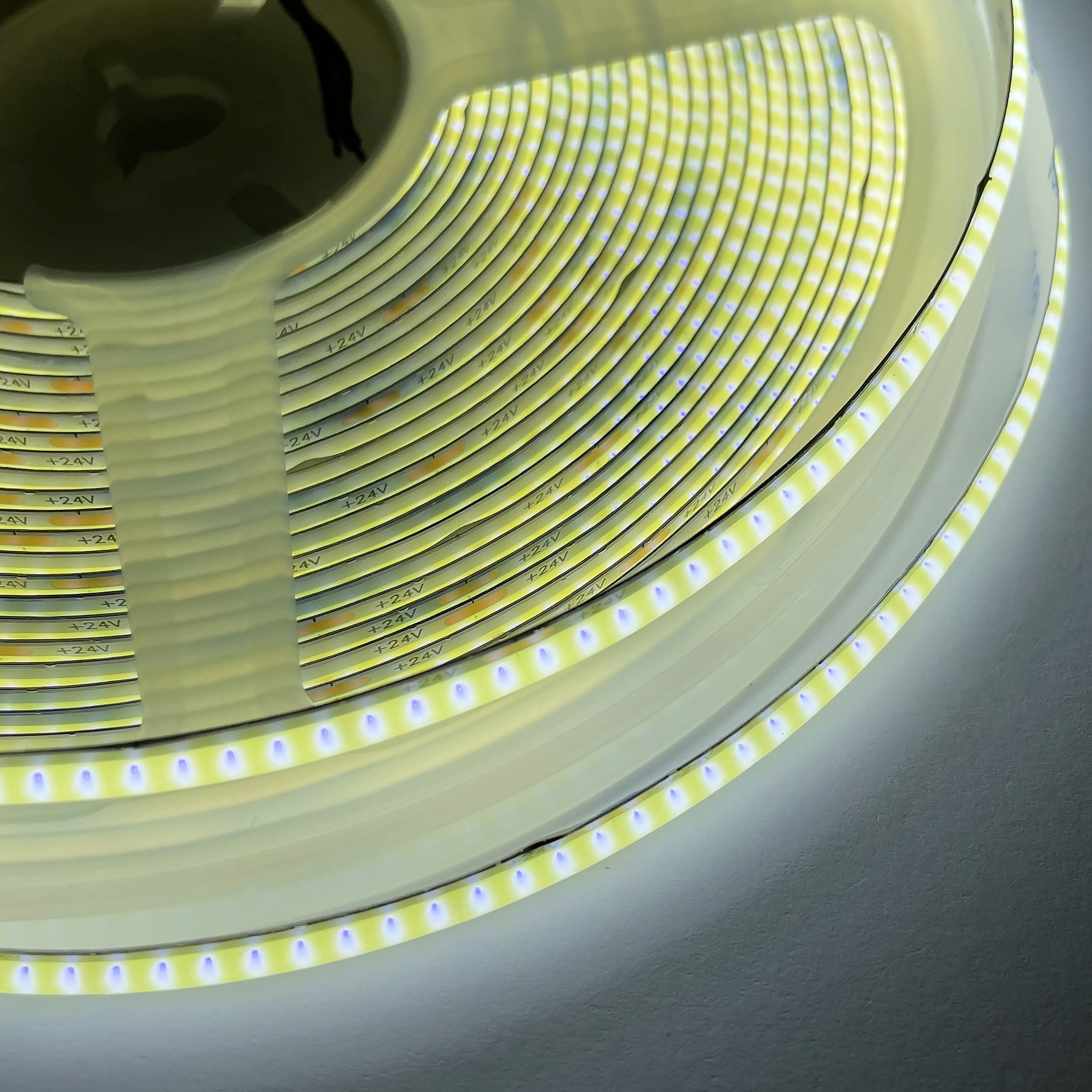 Світлодіодна стрічка OEM COB 24V холодно білого світла (6000–6500K) — це яскраве, чітке та контрастне освітлення для робочих і технічних зон. Технологія COB (Chip-on-Board) створює ідеально рівномірний потік світла, без окремих діодів і «плям».
